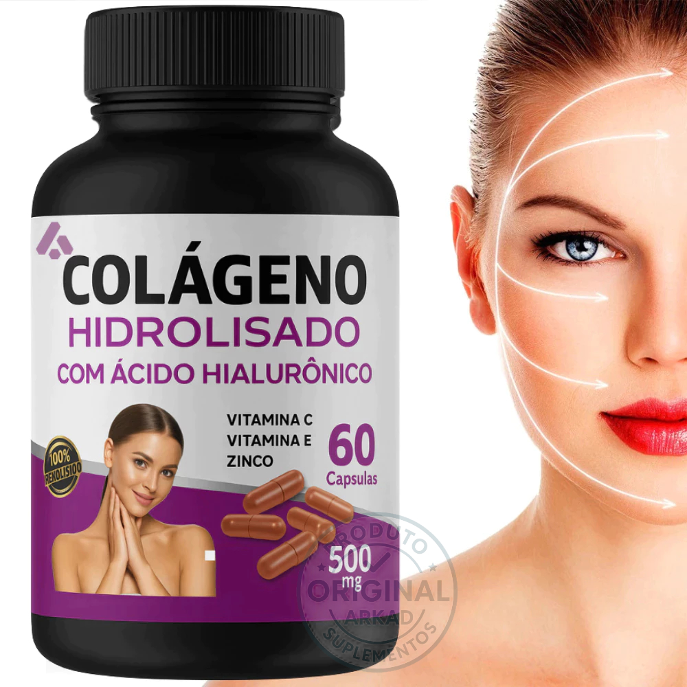KIT 3 Acido Hialuronico Colageno Hidrolisado Vit C Anti Idade - 180 capsulas - Arkad Suplementos