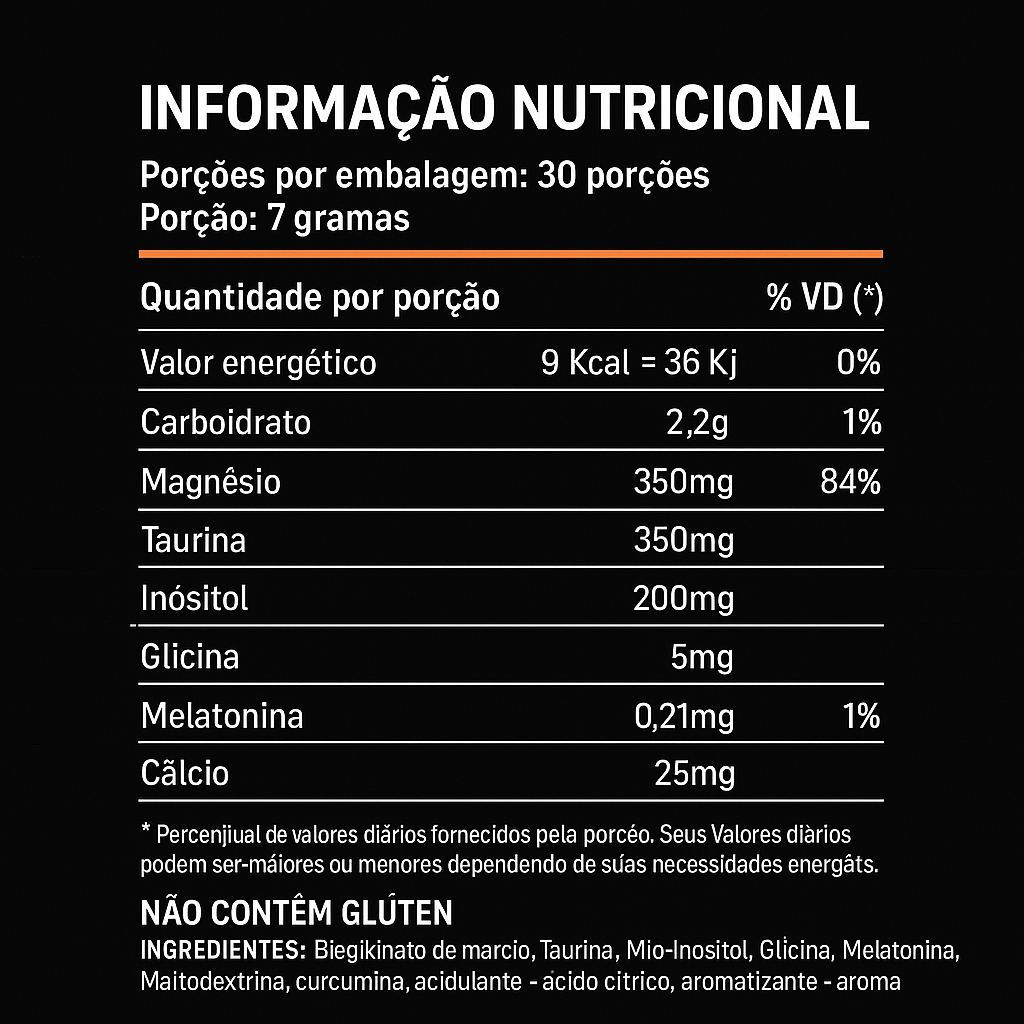 Magnésio E Inositol Taurina Melatonina Maracujá 210g Arkad