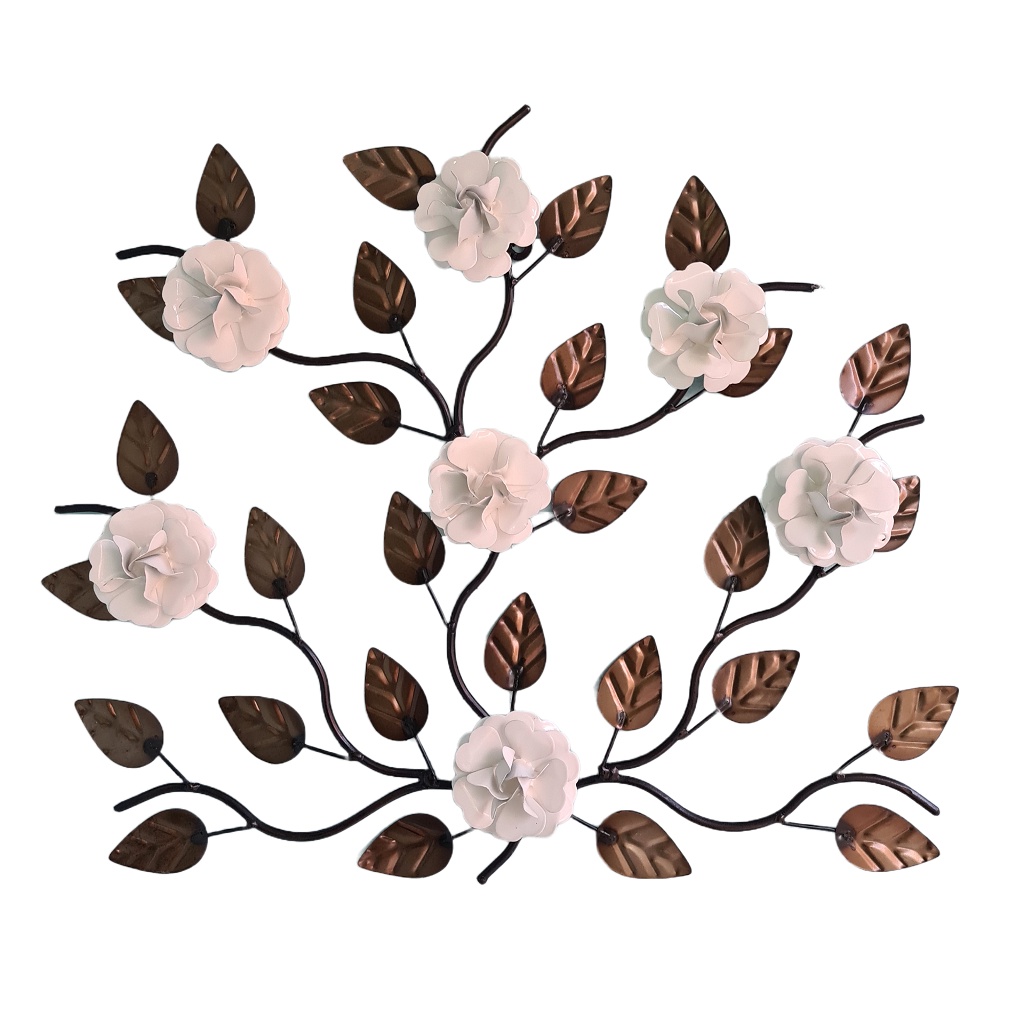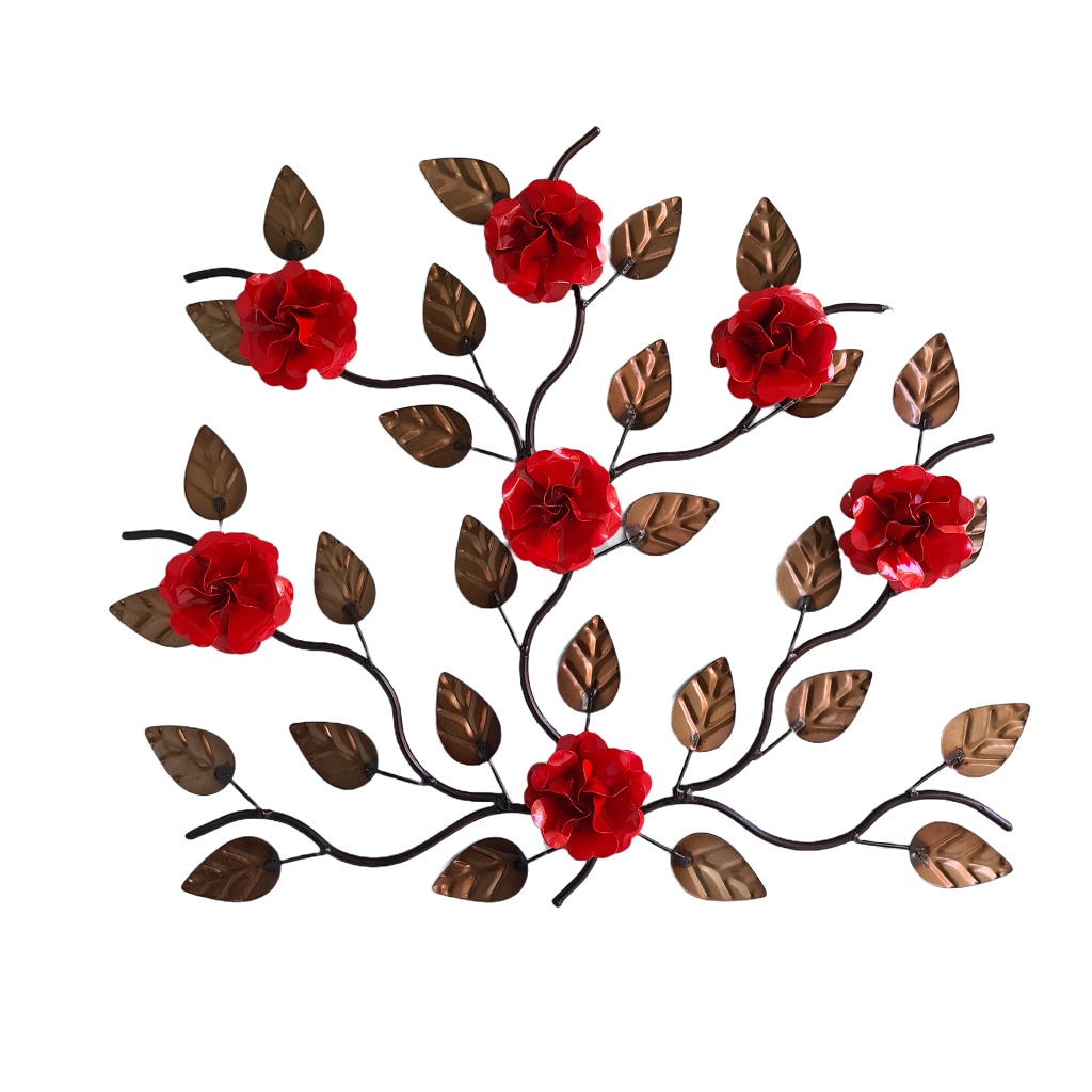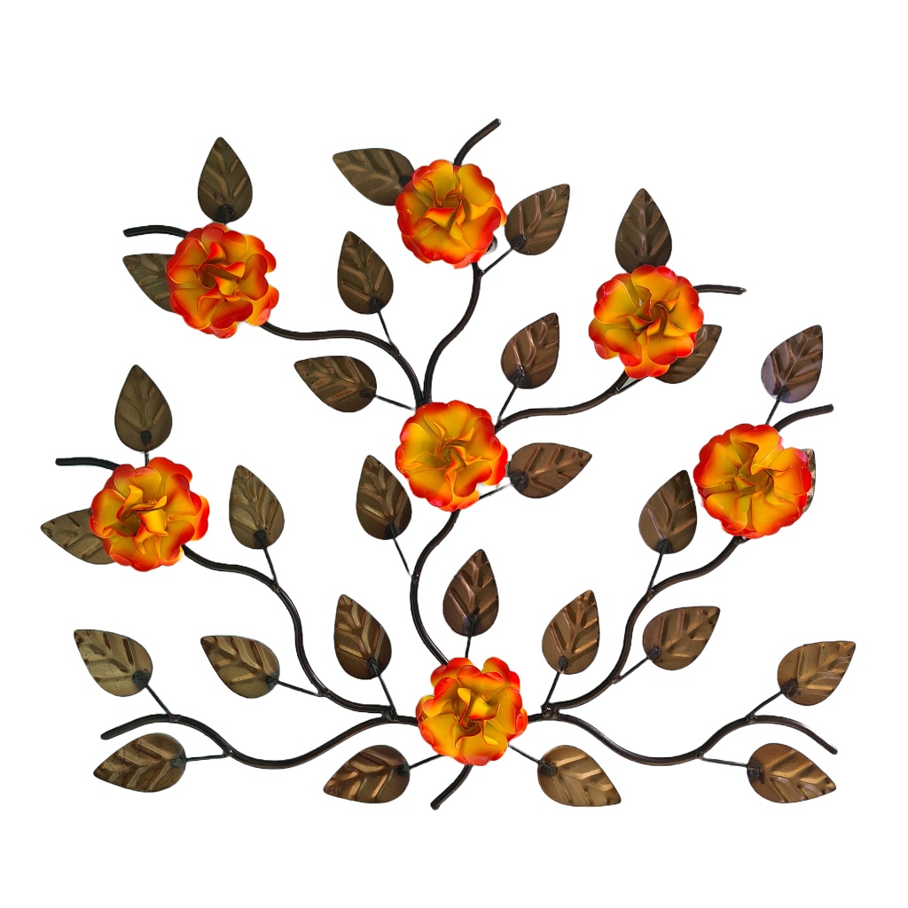 Mandala De Parede Em Ferro Artesanal Com Flores E Folhas