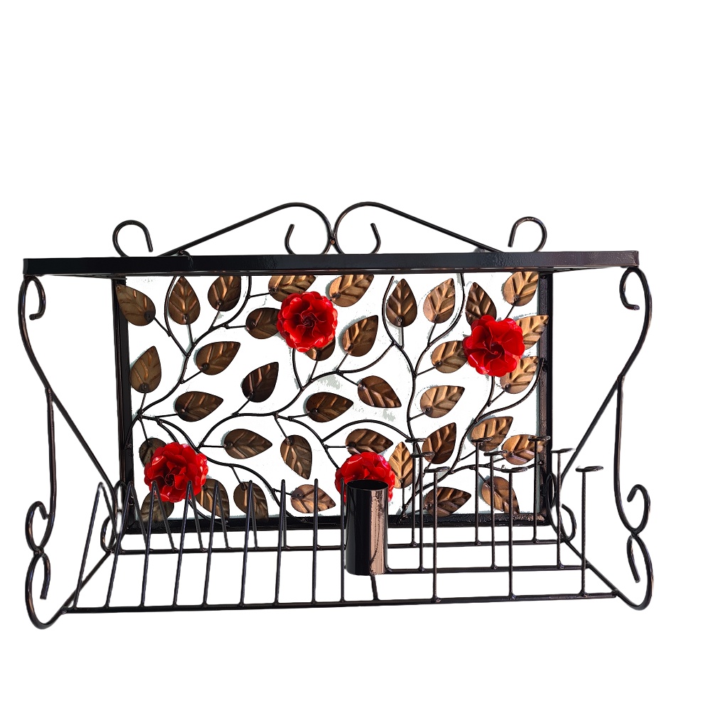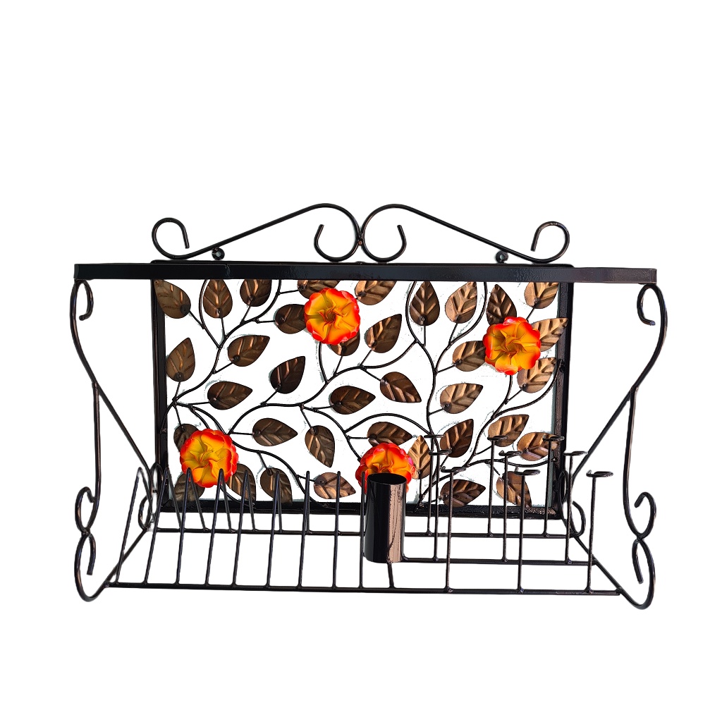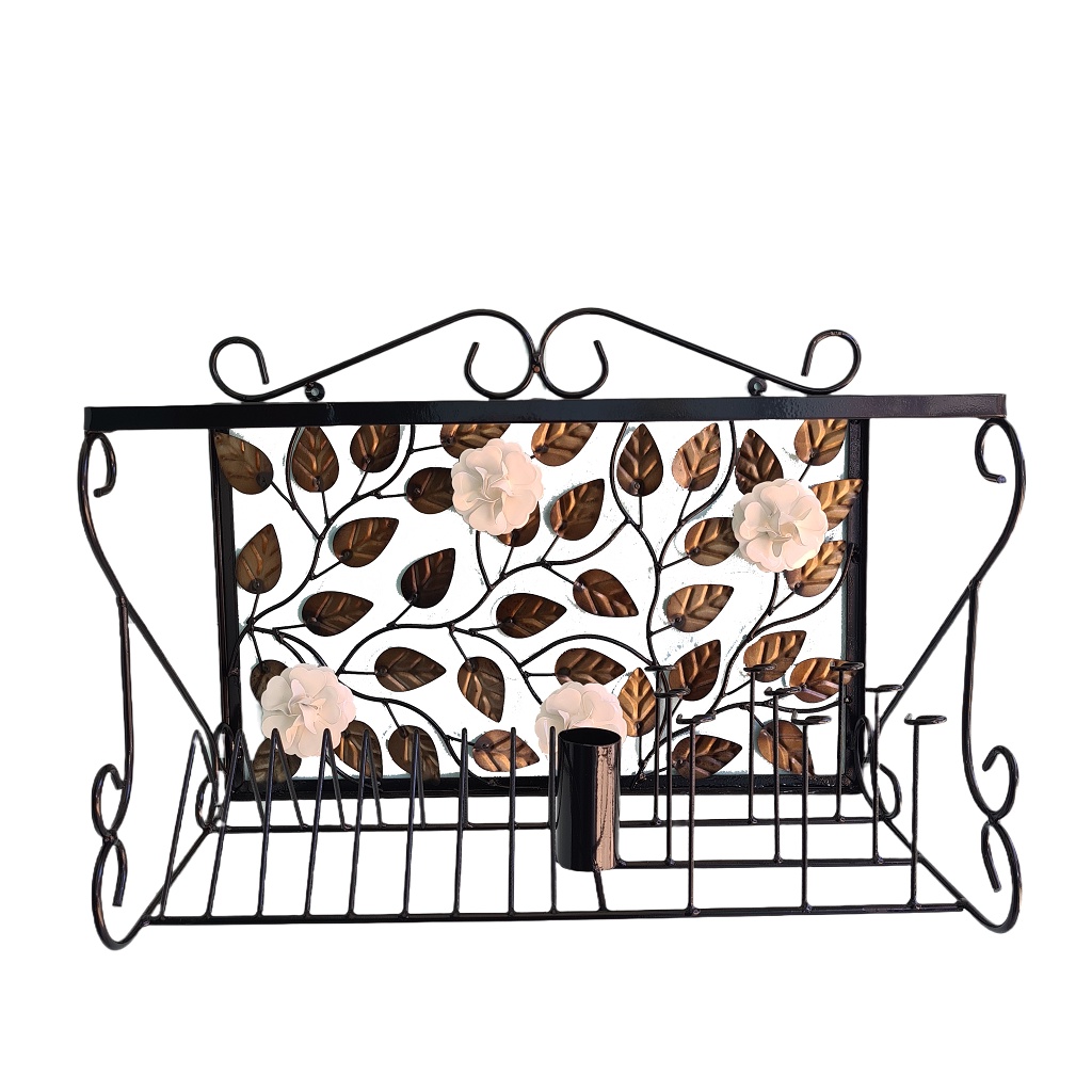 Escorredor de Louças em Ferro com Galho e Flor 60cm