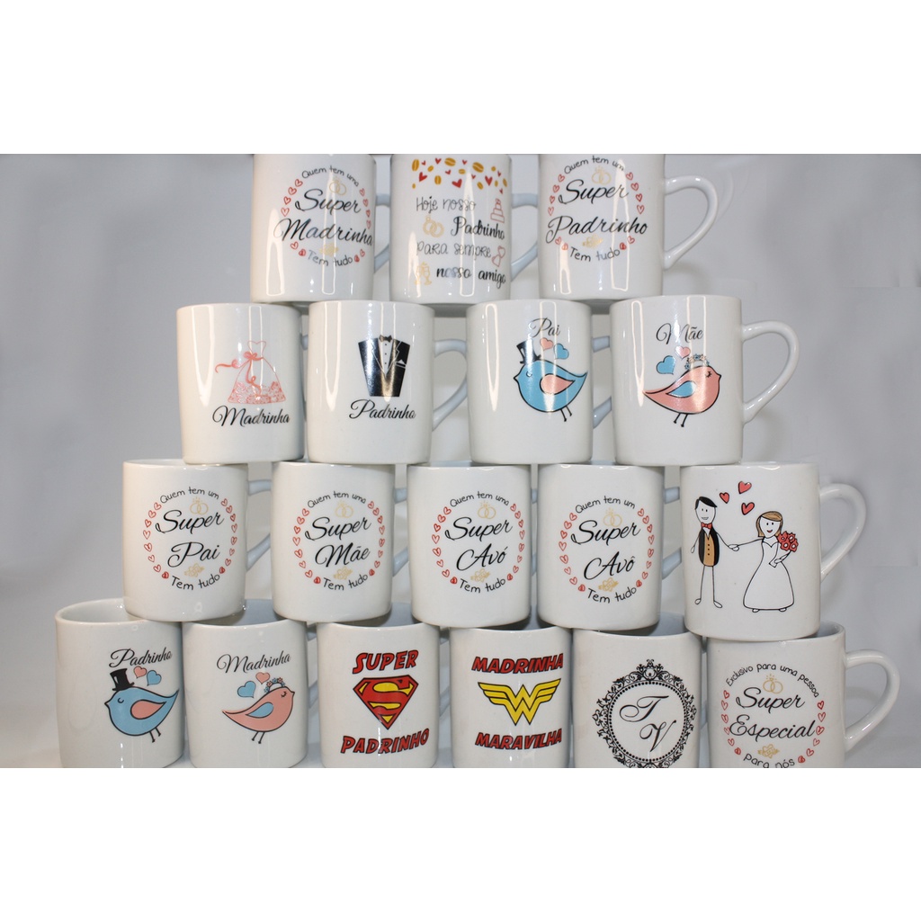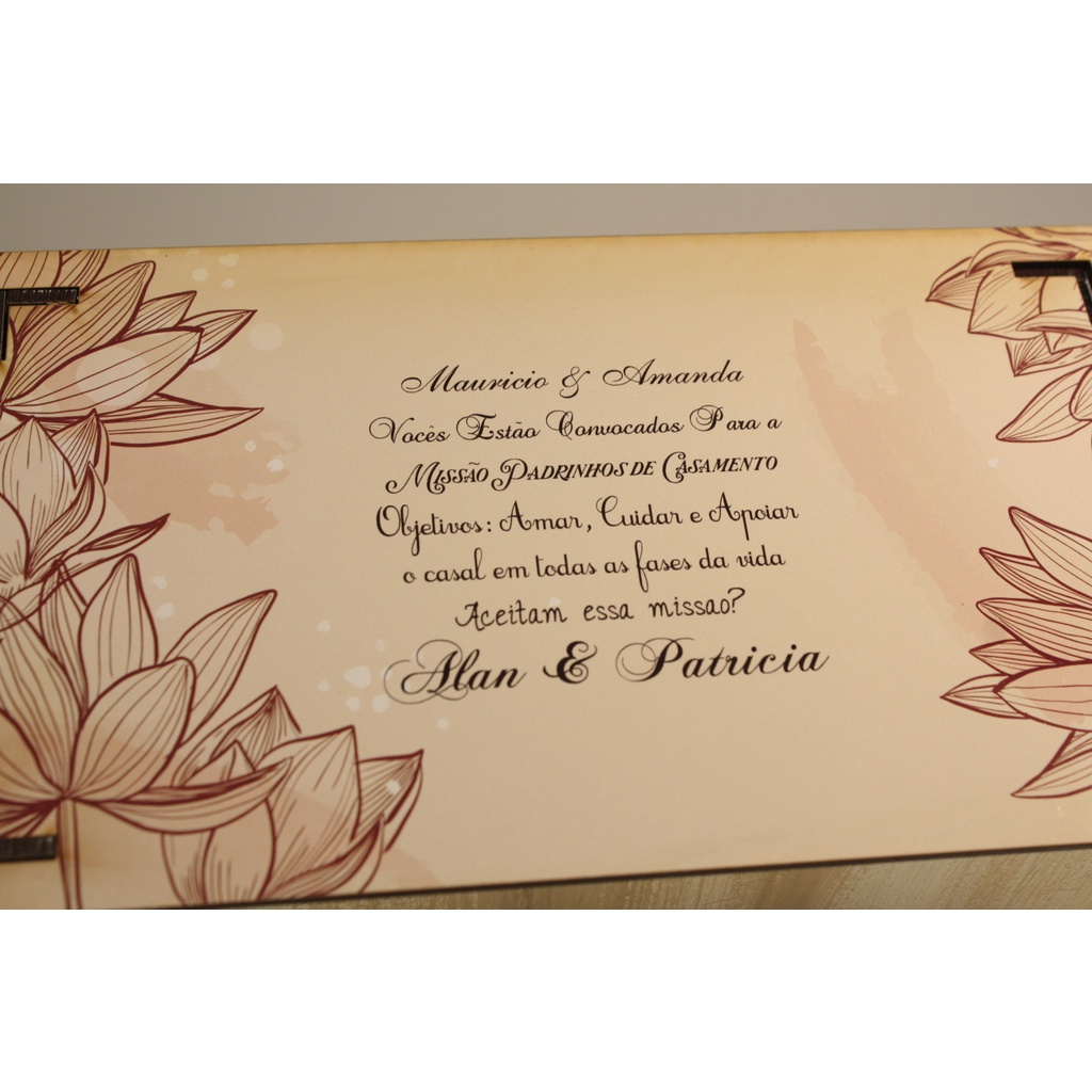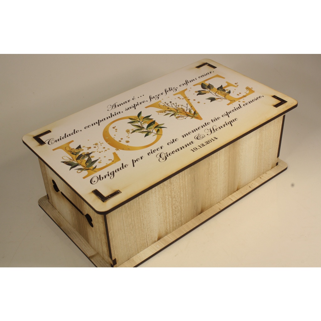 Casamento Padrinhos e Pais caixa rústica MDF Personalizada com 2 canecas porcelana