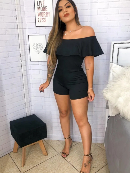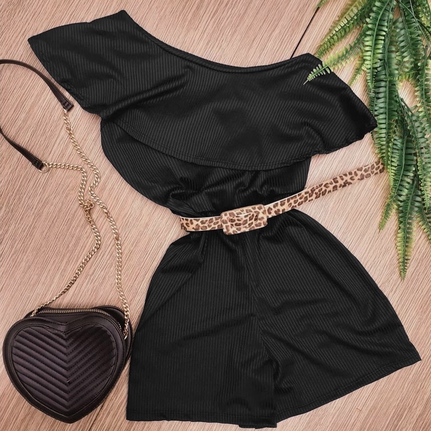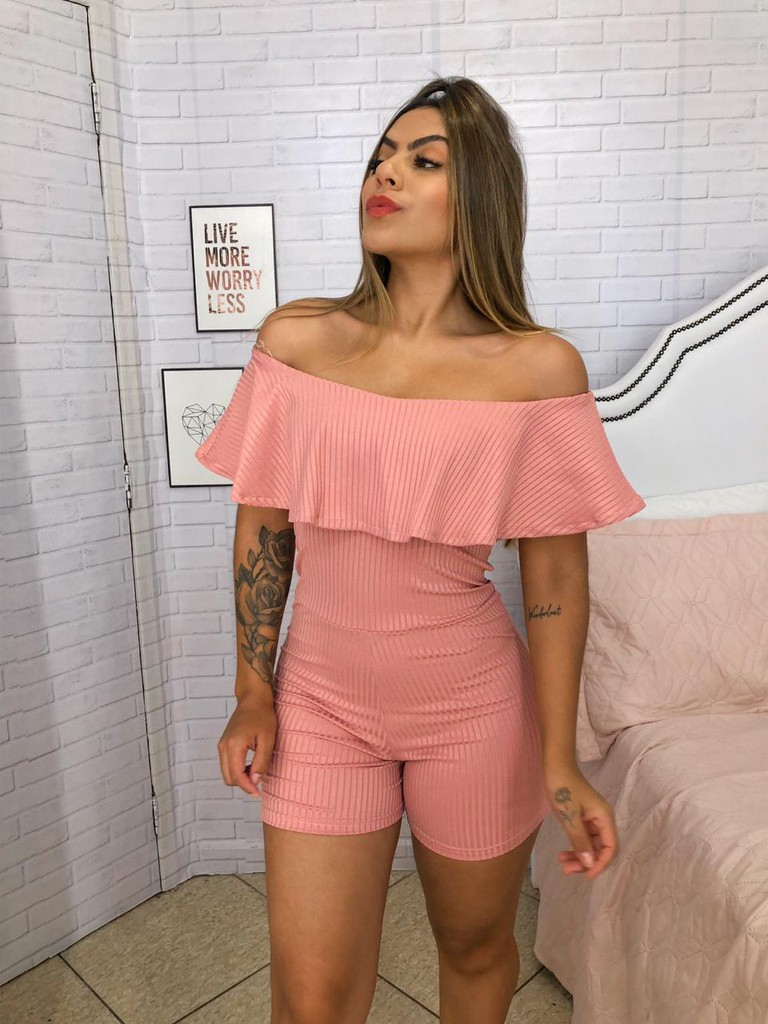 Macaquinho Feminino Tomara Que Caia Ombro a Ombro Canelado Macacao Moda Gringa Curto Verão