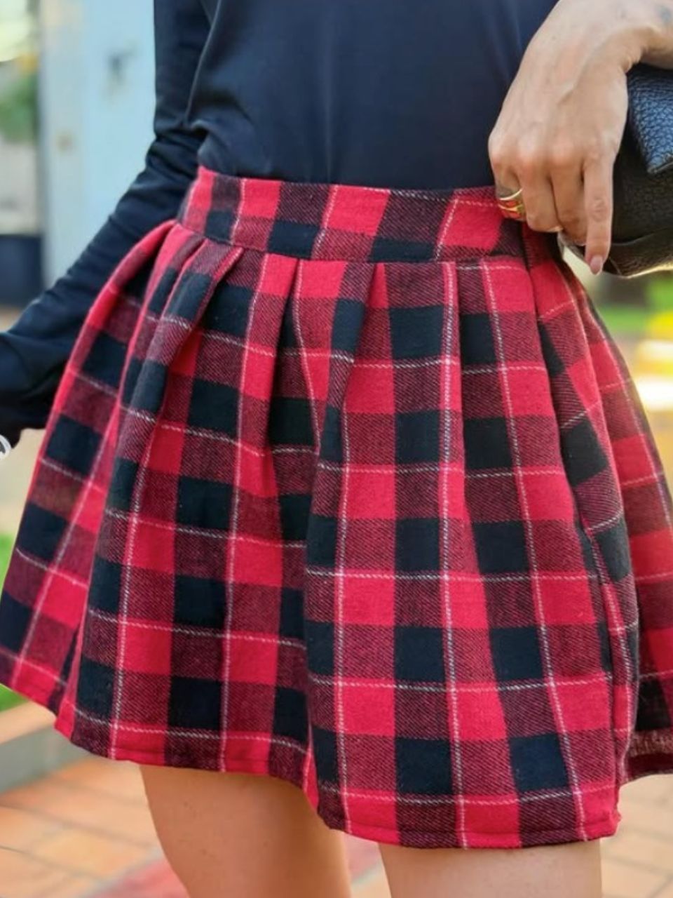 Saia Feminina Xadrez Festa Sertaneja Outono/Inverno Show Noite Blogueira Gringa Balada Festas Rodeio