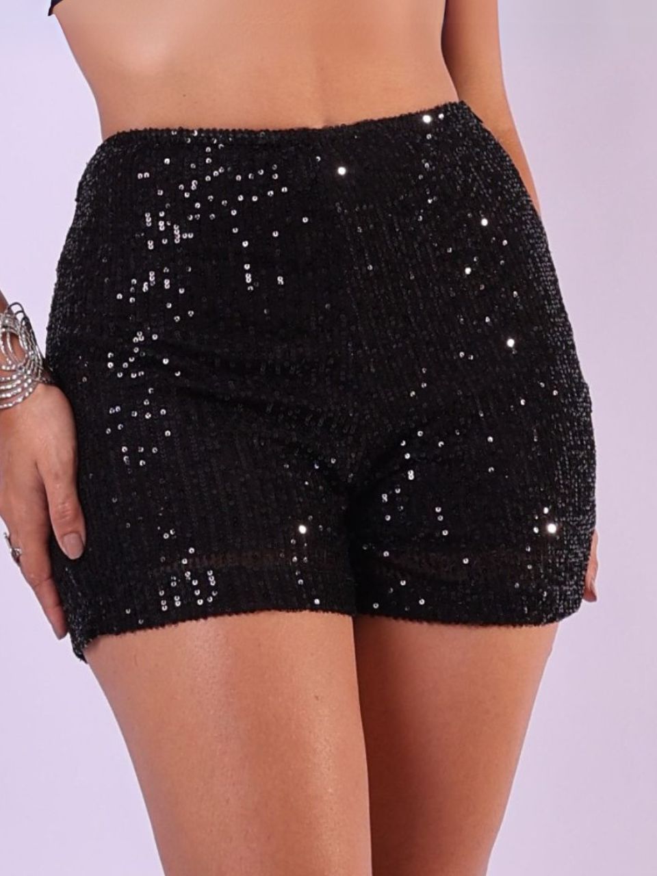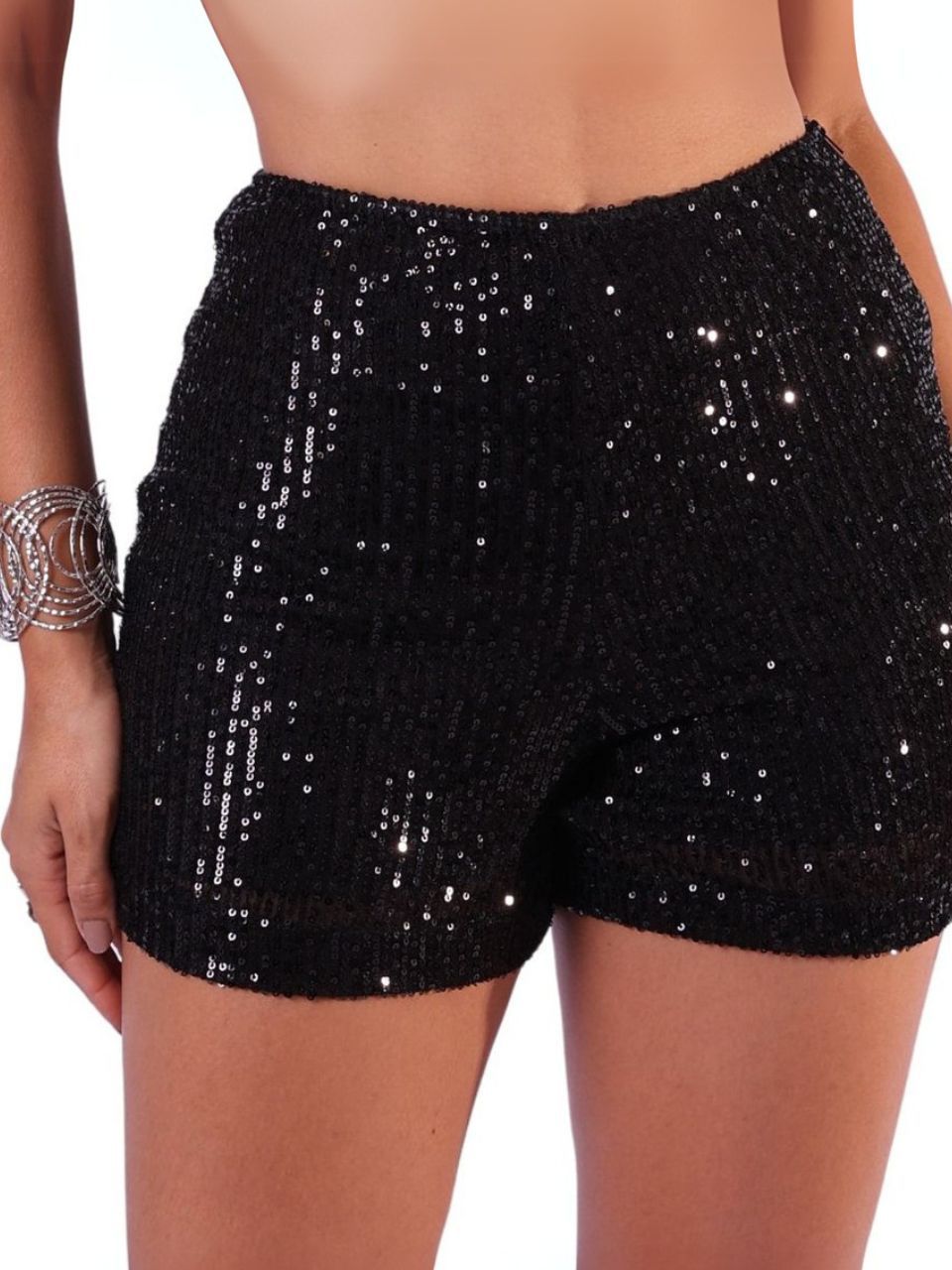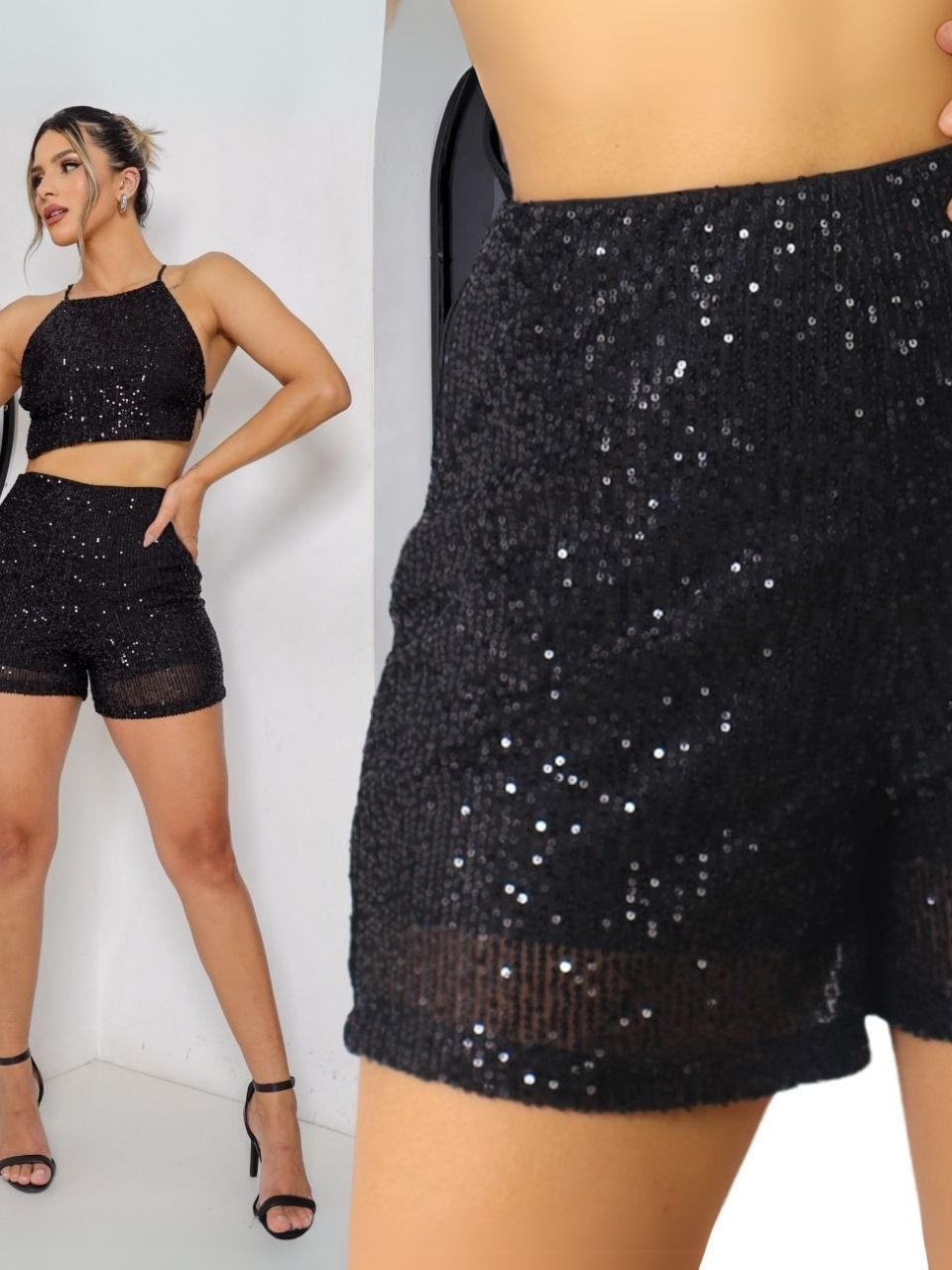 Short Paetê Preto Cintura Alta Curto Feminino Balada Cos alto Levanta Bumbum Festas Shorts Todas Ocasiões Moda Gringa