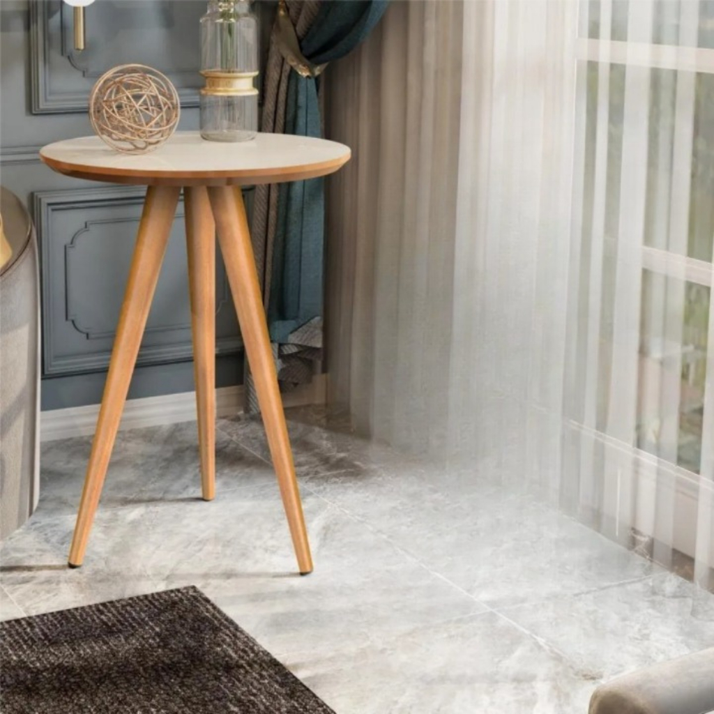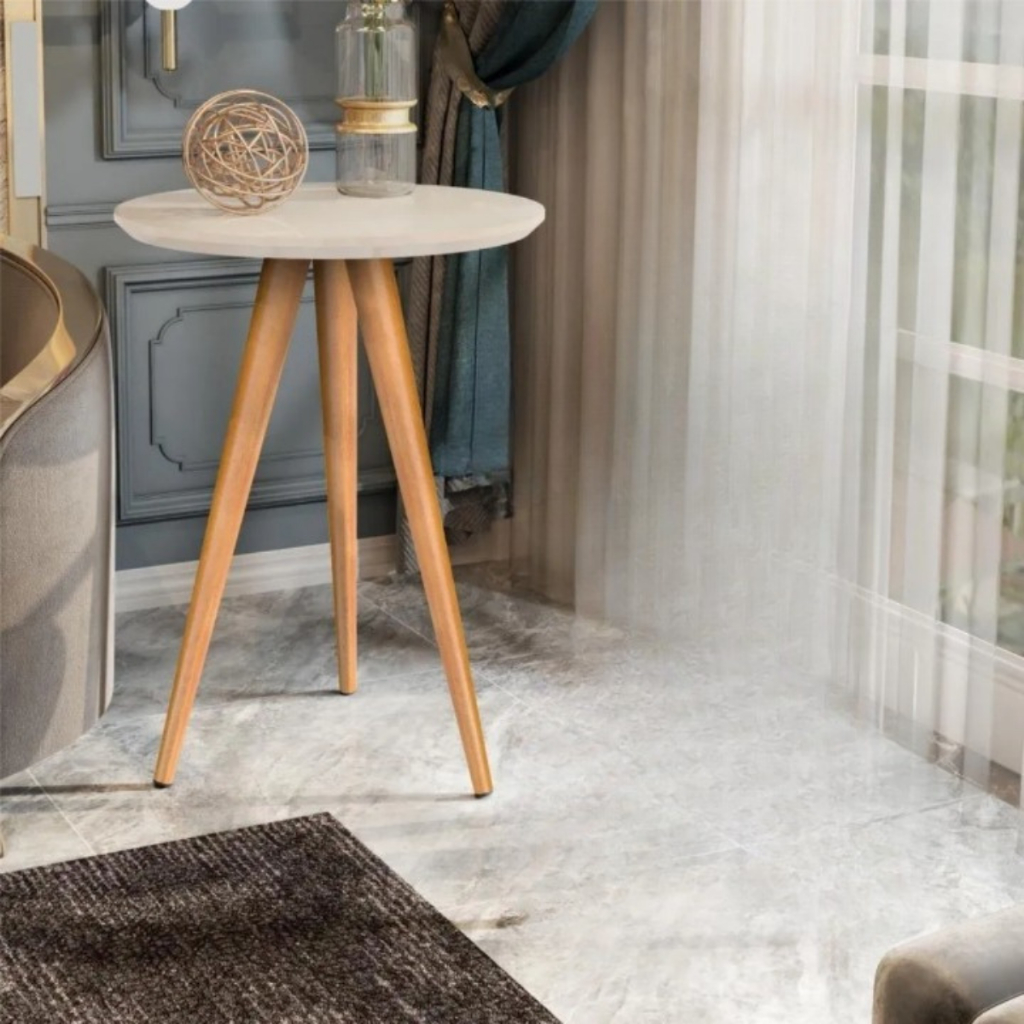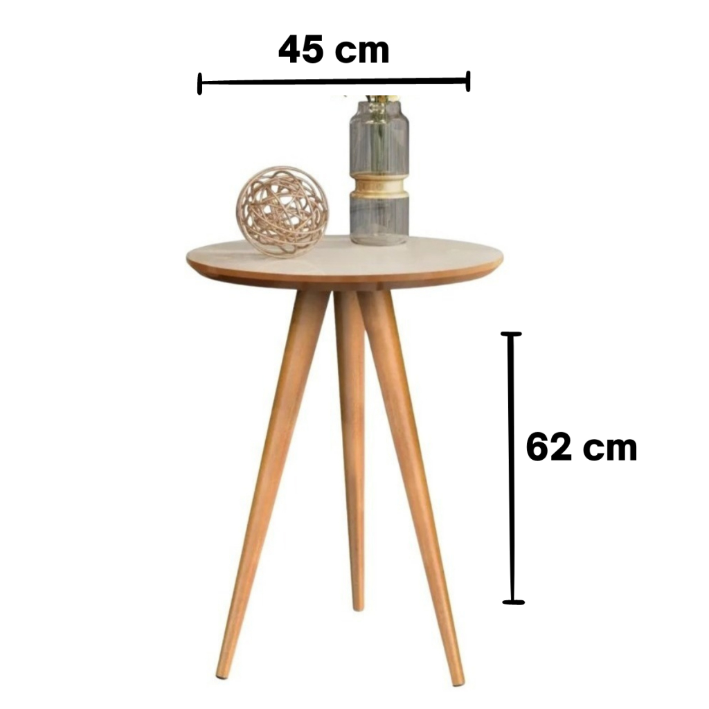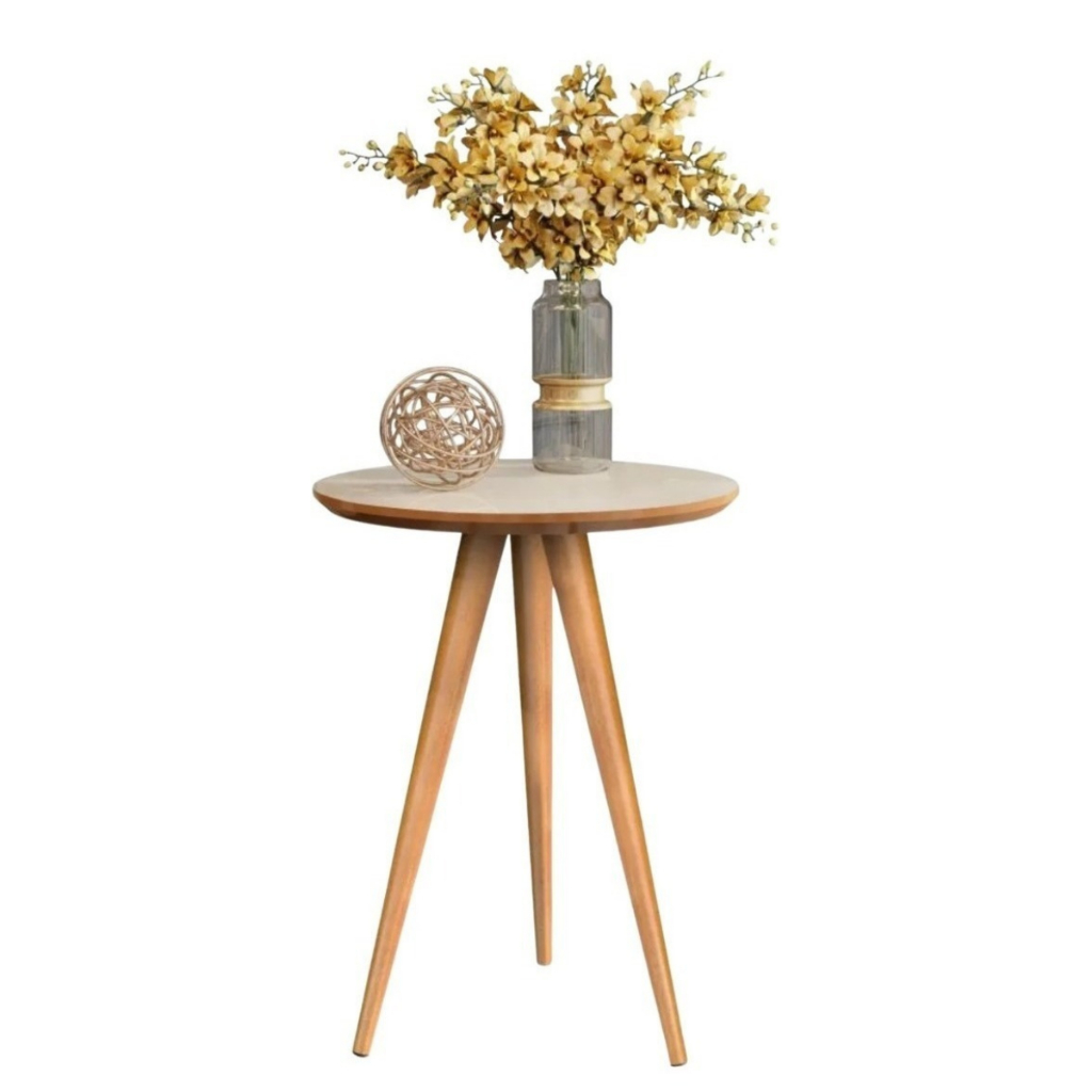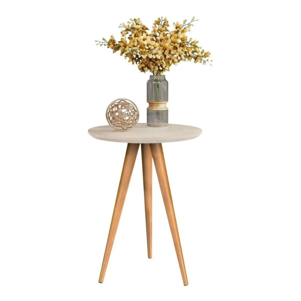 Mesinha de Canto Redonda Apoio Lateral Sofá Pés Madeira Palito para Quarto Sala