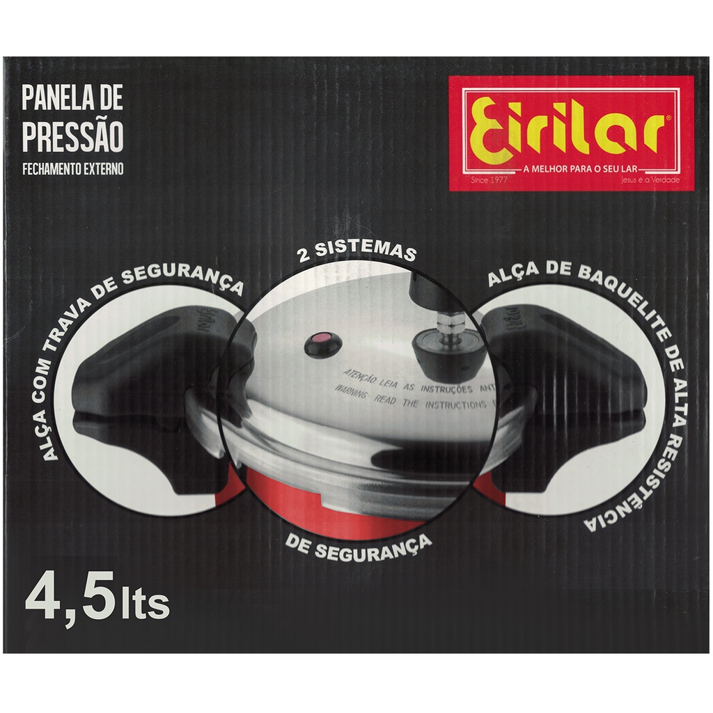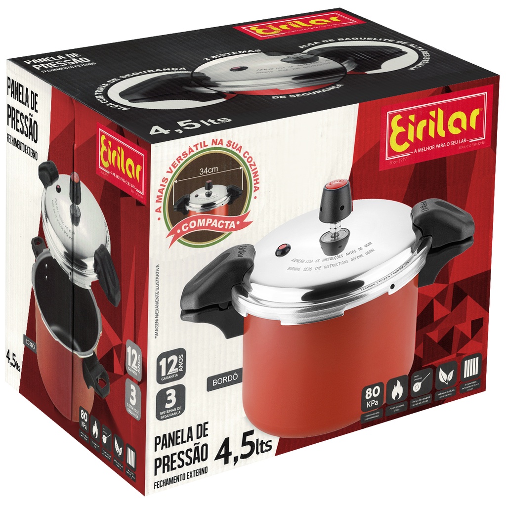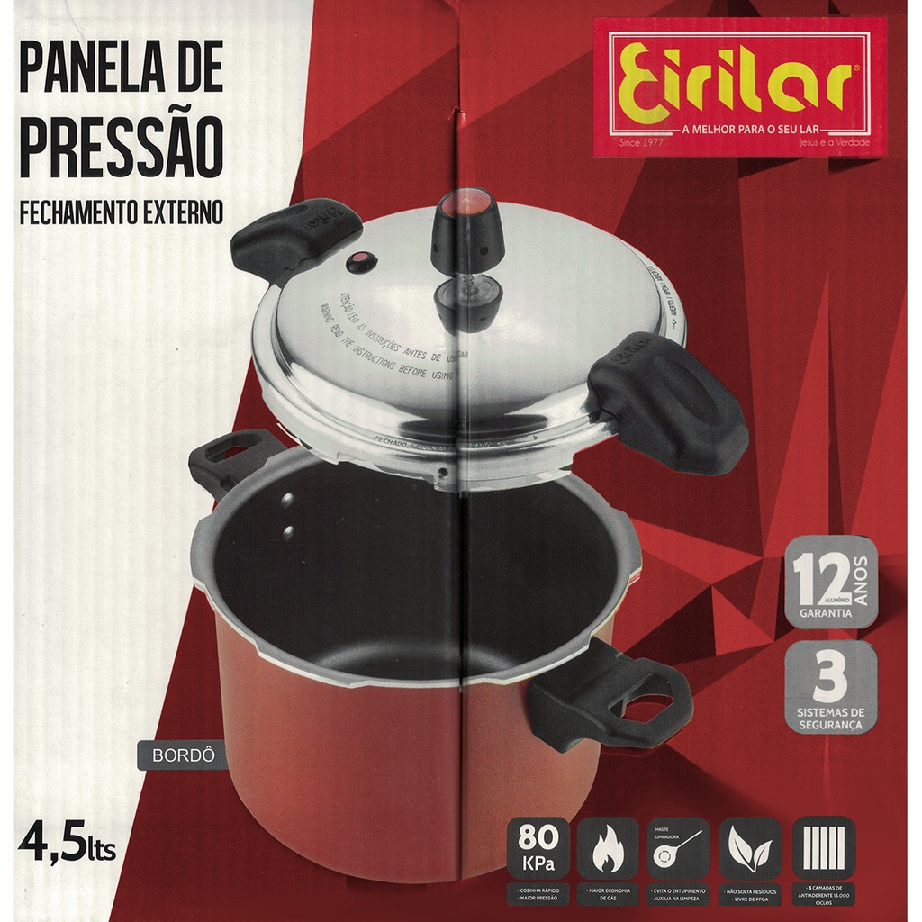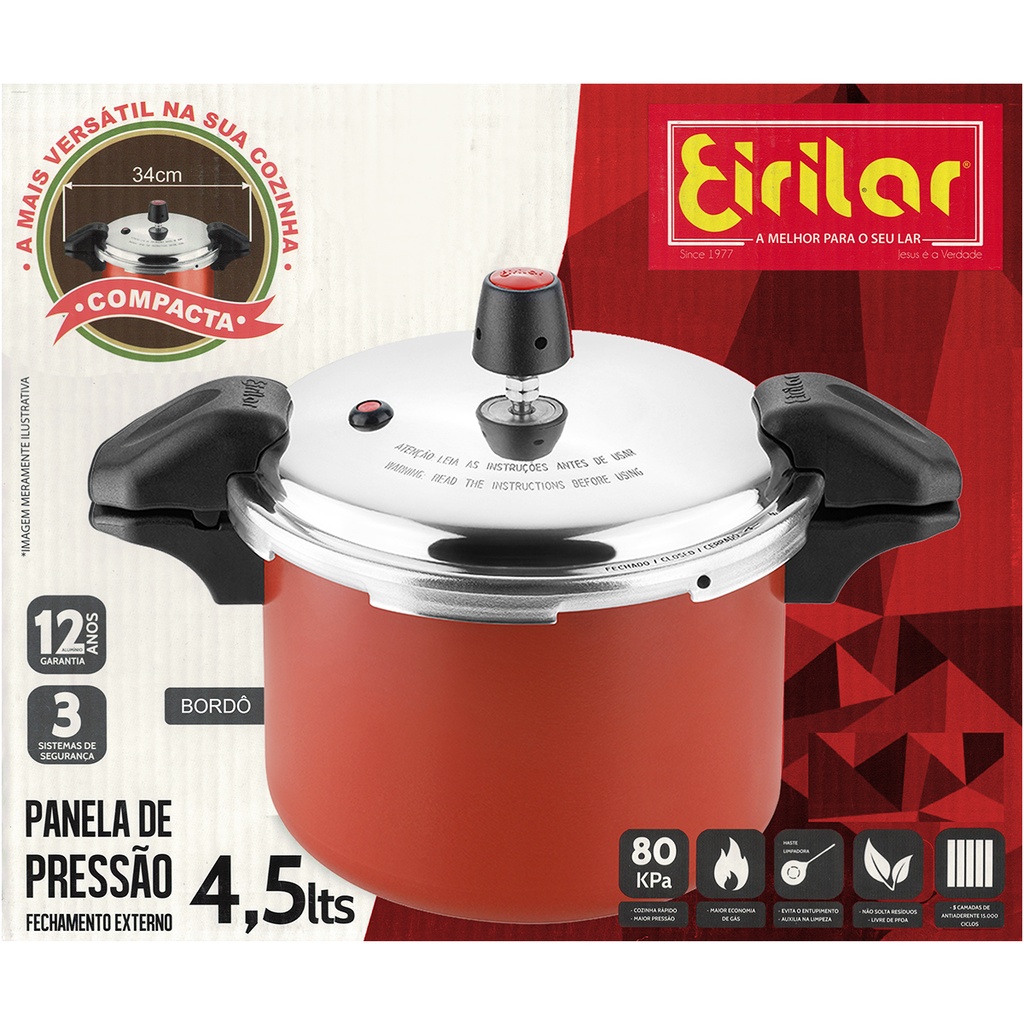 Panela De Pressão 4,5 Litros Bordô Antiaderente Alça Fechamento Externo Eirilar