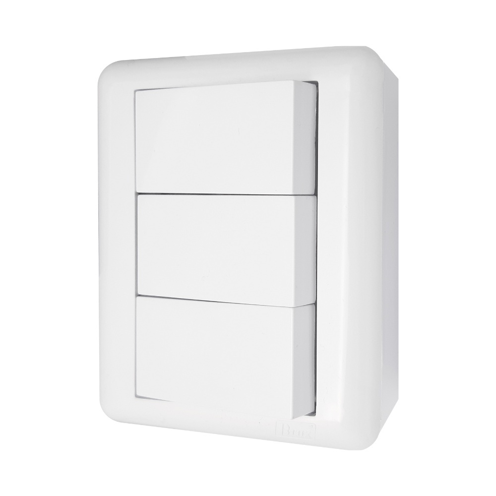 INTERRUPTOR SISTEMA X SOBREPOR SIMPLES OU PARALELO TREWAY TRIPLO 3 SEÇÕES BRANCO MODULAR OVERLAP BLUX 105805