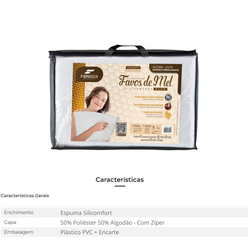 Travesseiro Fibrasca Favos de Mel Lavável 50x70