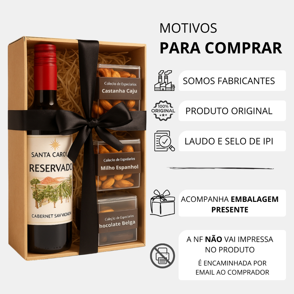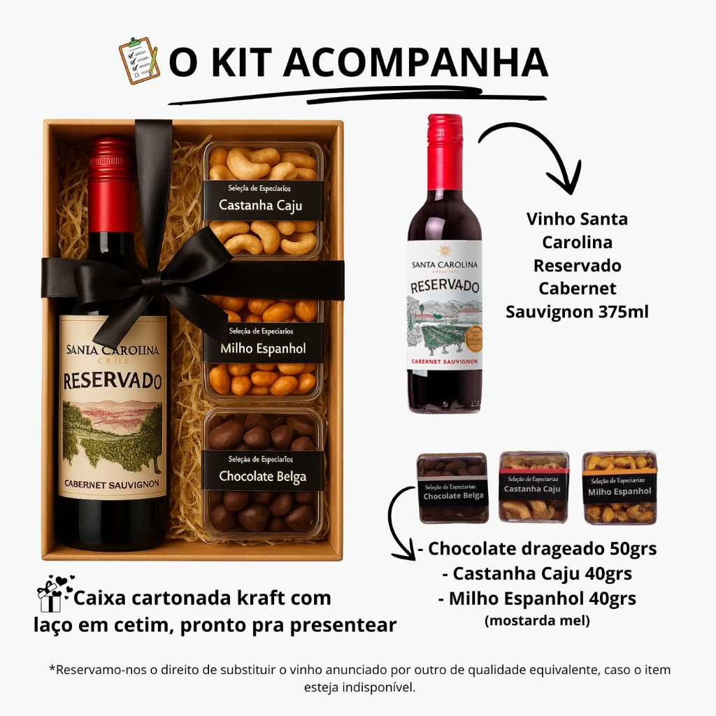 Kit Vinho Tinto Reservado Cabernet Sauvignon 375ml com Aperitivos - Presente Brinde para Todas as Ocasiões