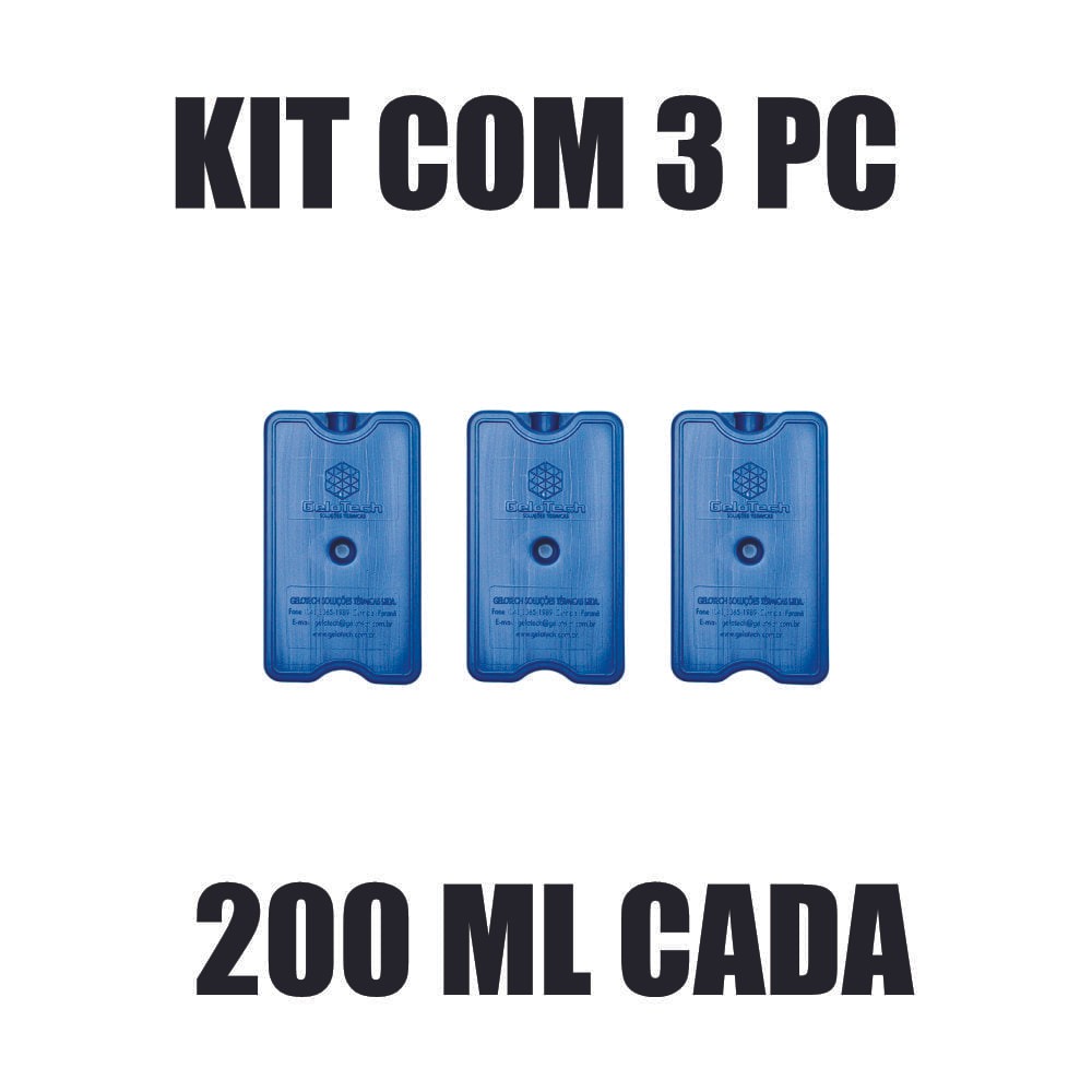 Gelo Rigido Reutilizavel Reciclavel 200 ml - Kit com 3 un