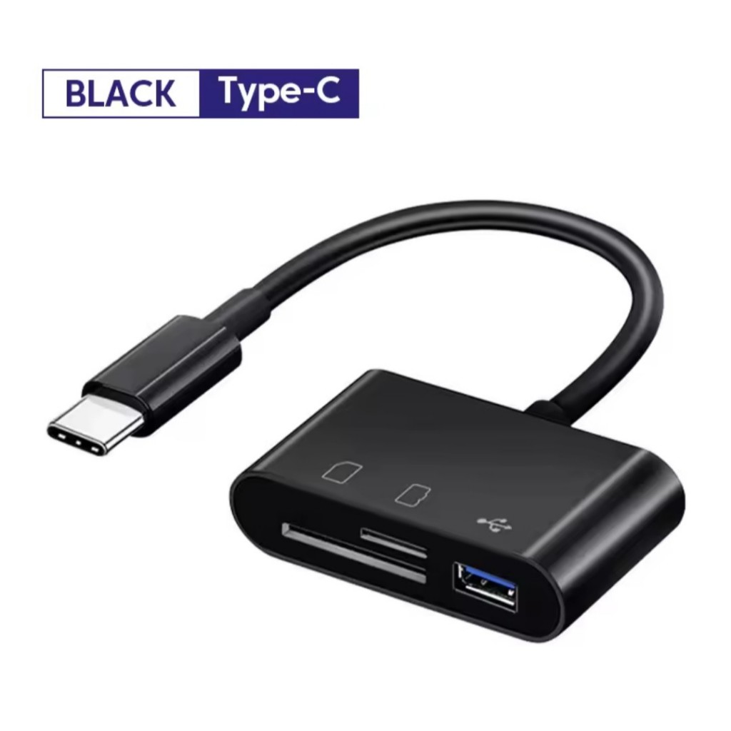 Adaptador leitor cartão de memória 3 em 1, SD, MicroSD e USB Tipo C, TF, OTG, conversor para Celulares, Tablets