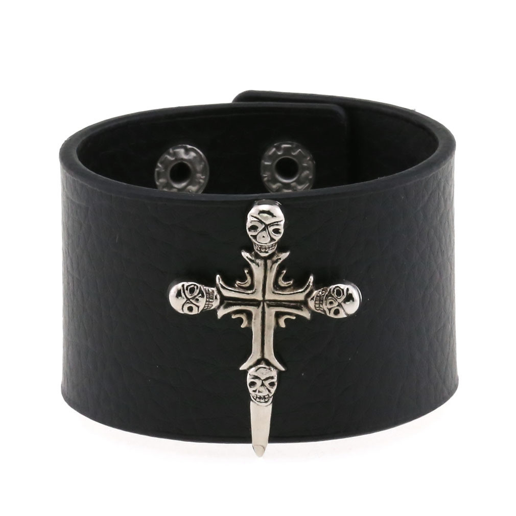 Punk Hip Hop Rock Pulseiras De Couro Do Plutônio Na Moda Corrente Crânio Pentagrama Rebite Festa Jóias Acessórios