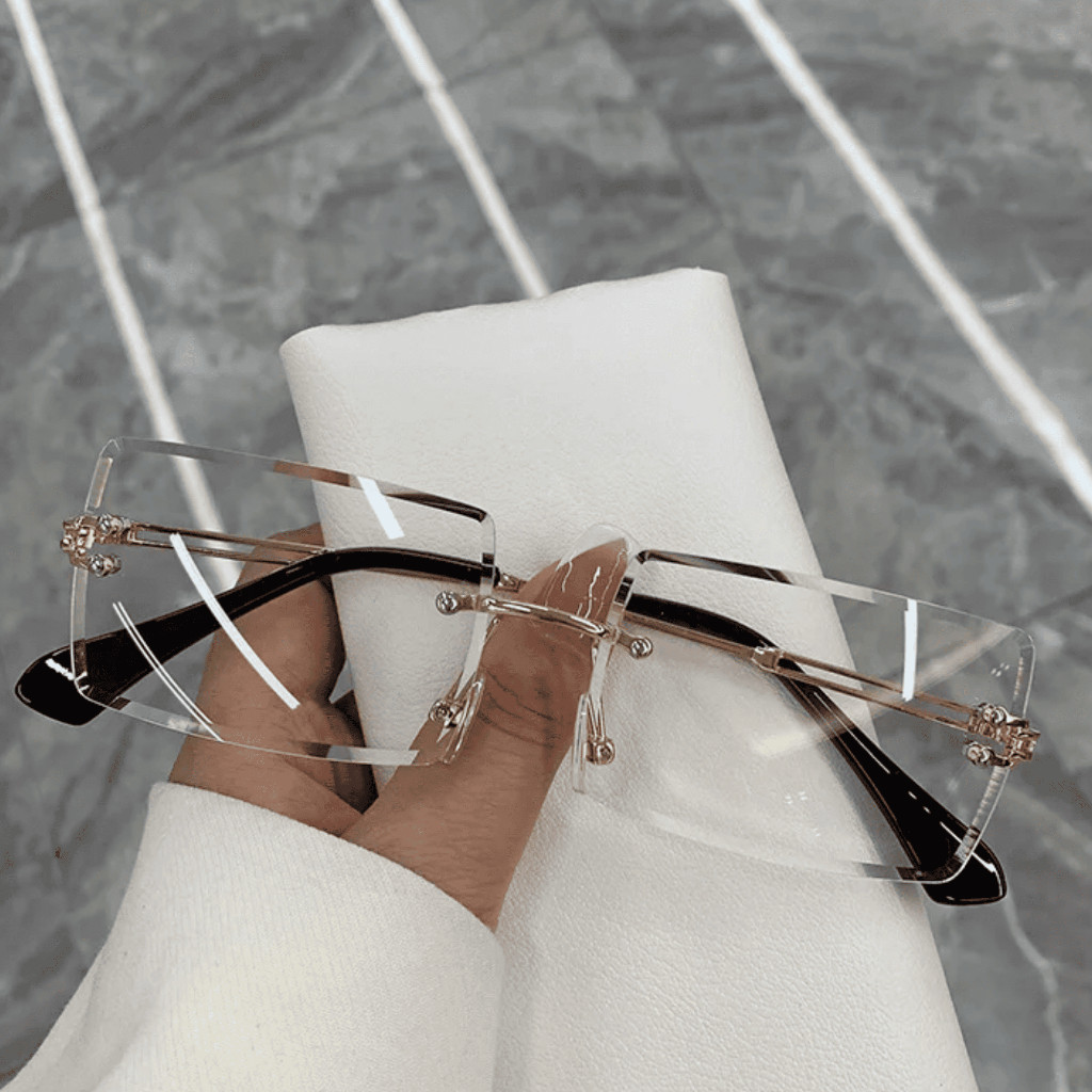 Óculos de Sol Feminino Sem Aro Retangular Blogueira Proteção UV Verão Praia Piscina