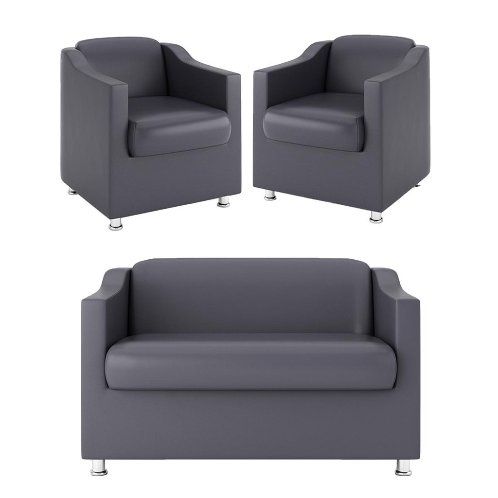 Kit Sofá Namoradeira + 2 Poltronas Decorativa Tecido Courino