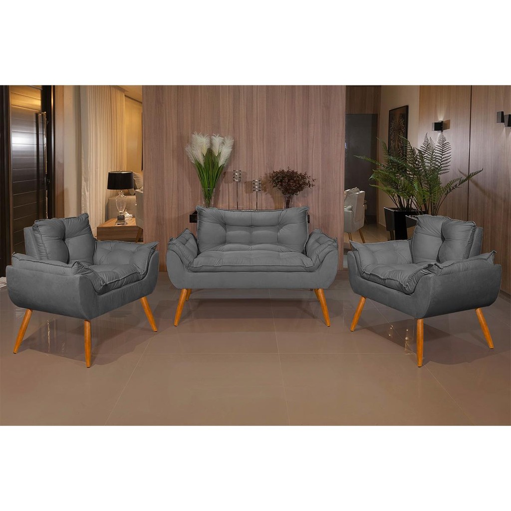 Kit 2 Poltronas + Namoradeira Opala Luxo para Sala Balaqui Decor
