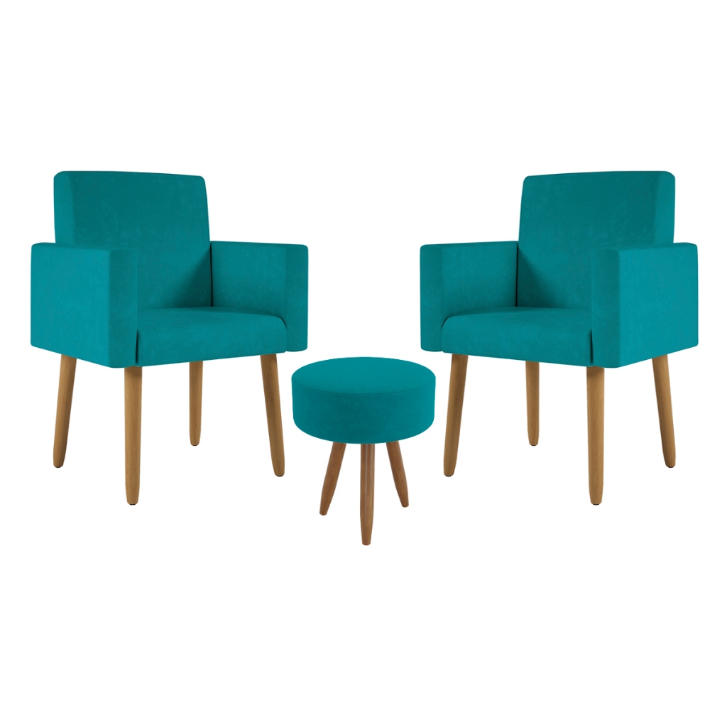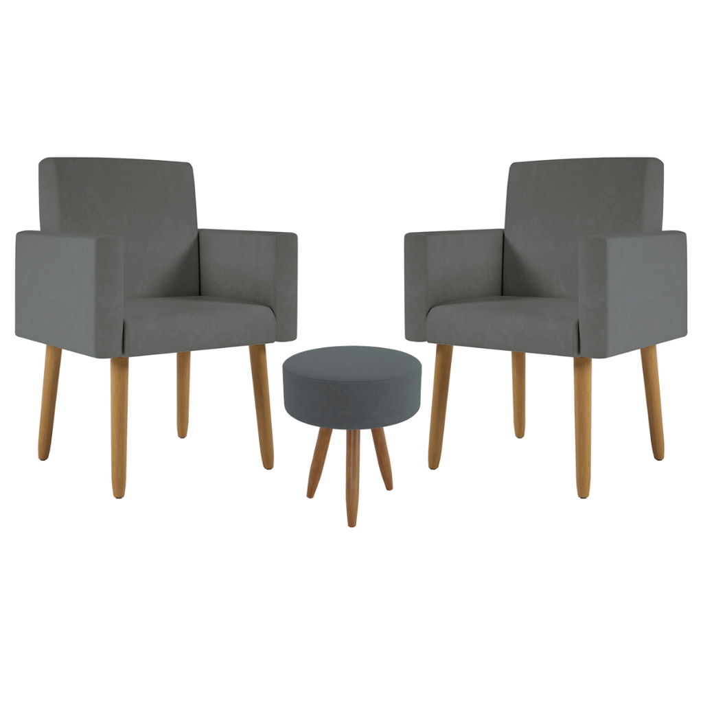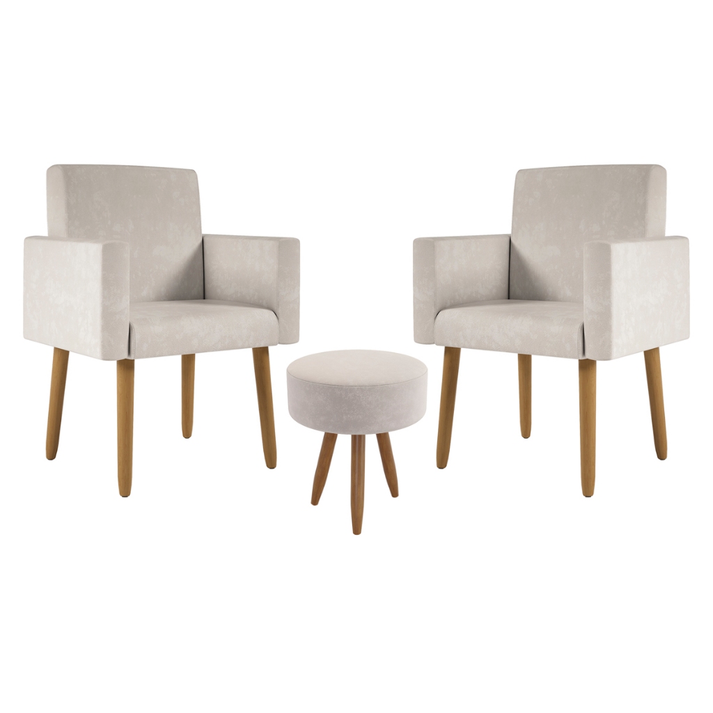 Kit 2 Poltronas Decorativa Consultorio Nina Com Puff Balaqui