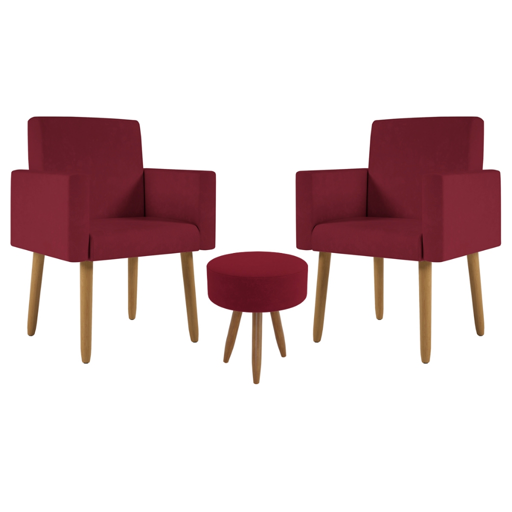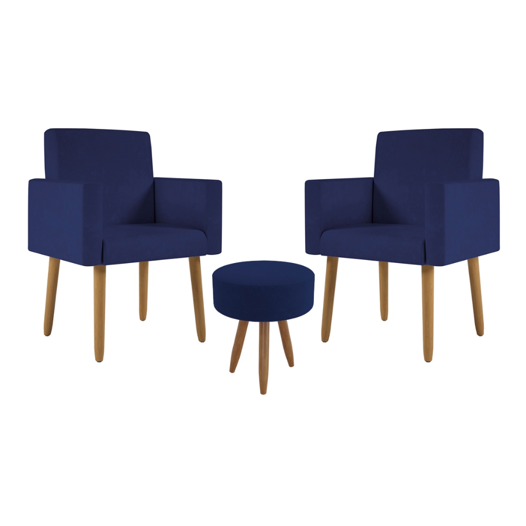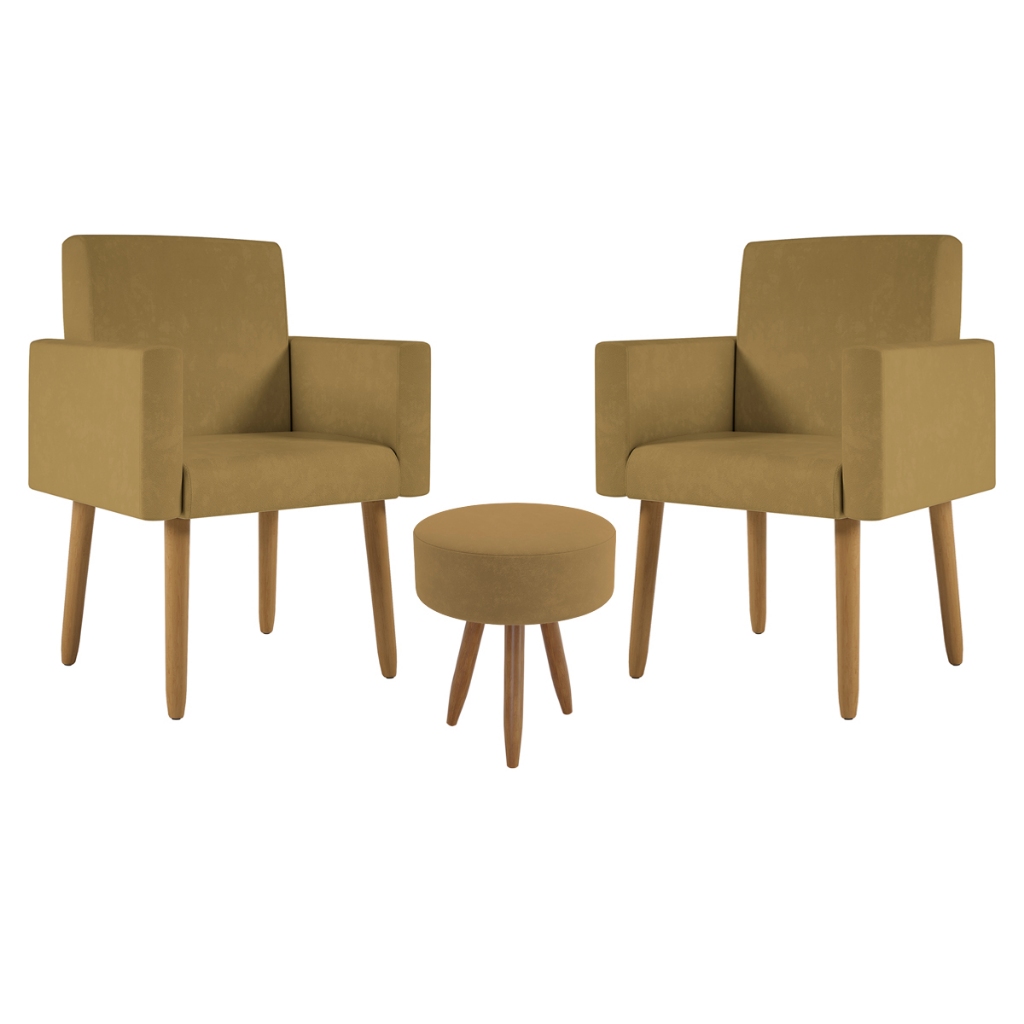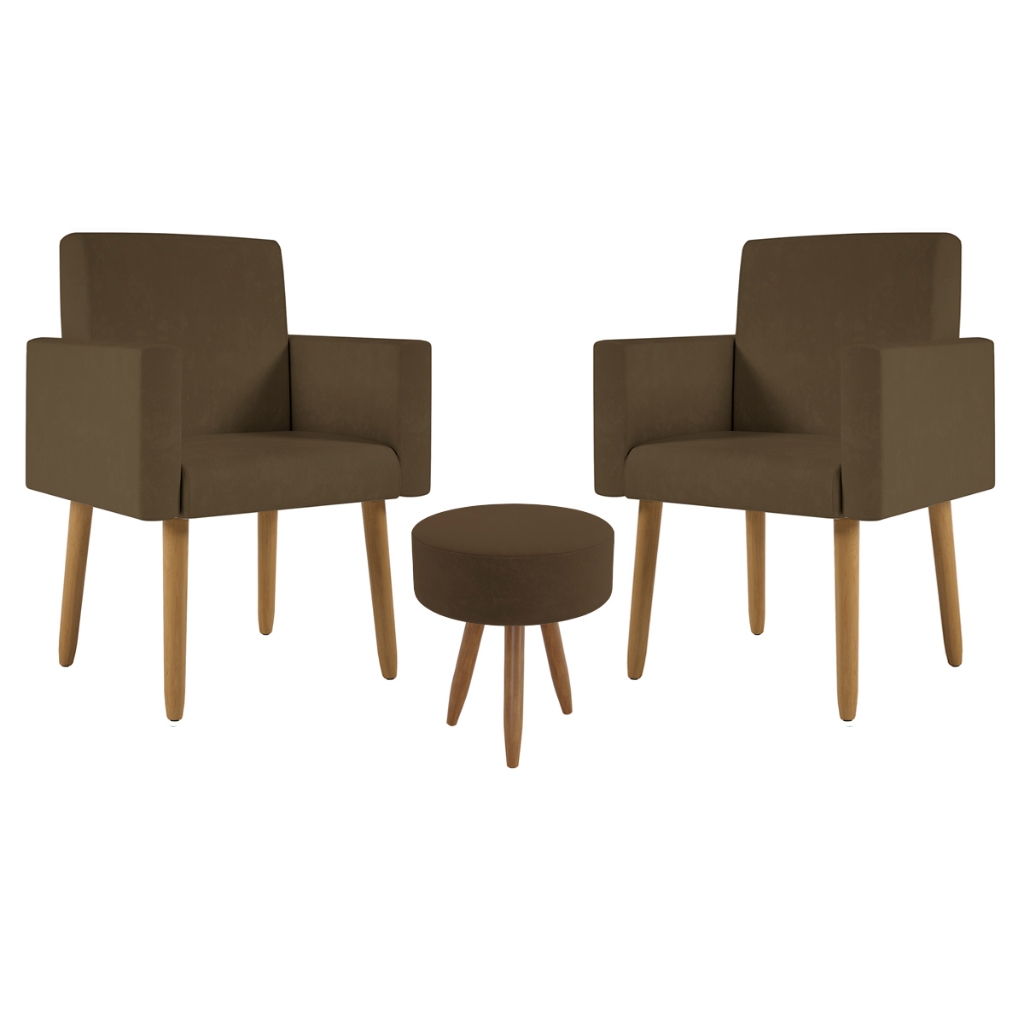 Kit 2 Poltronas Decorativa Consultorio Nina Com Puff Balaqui