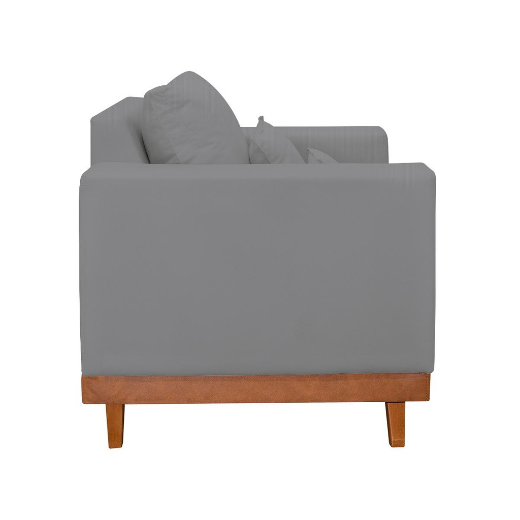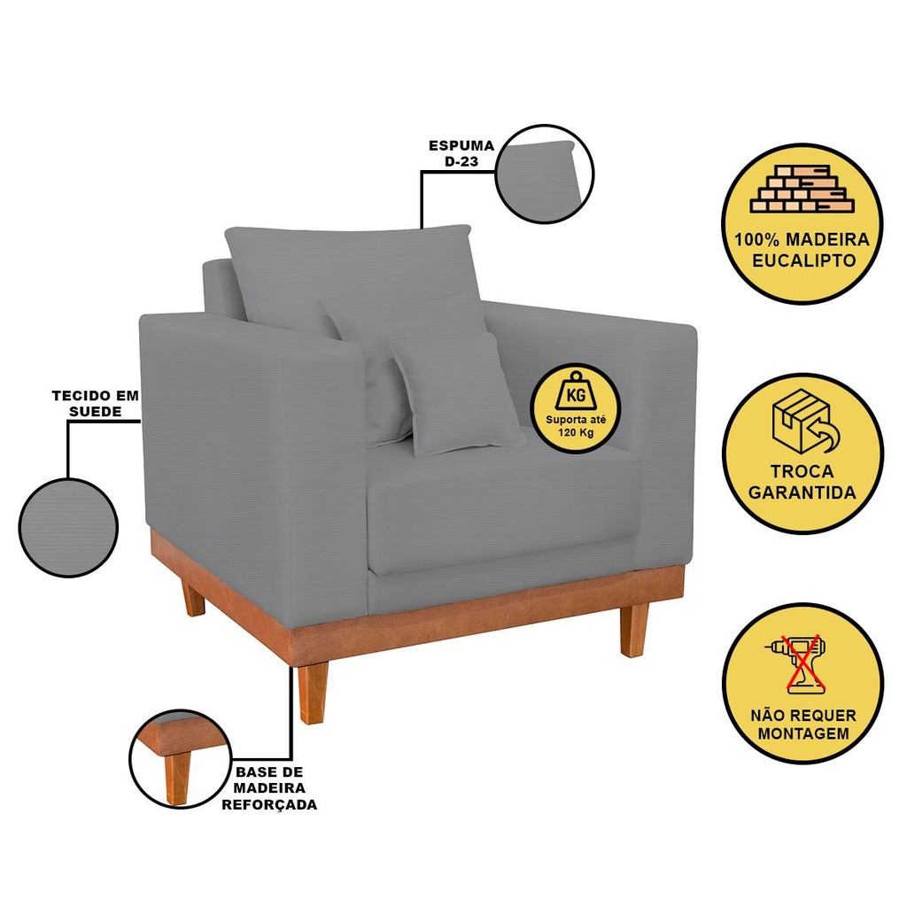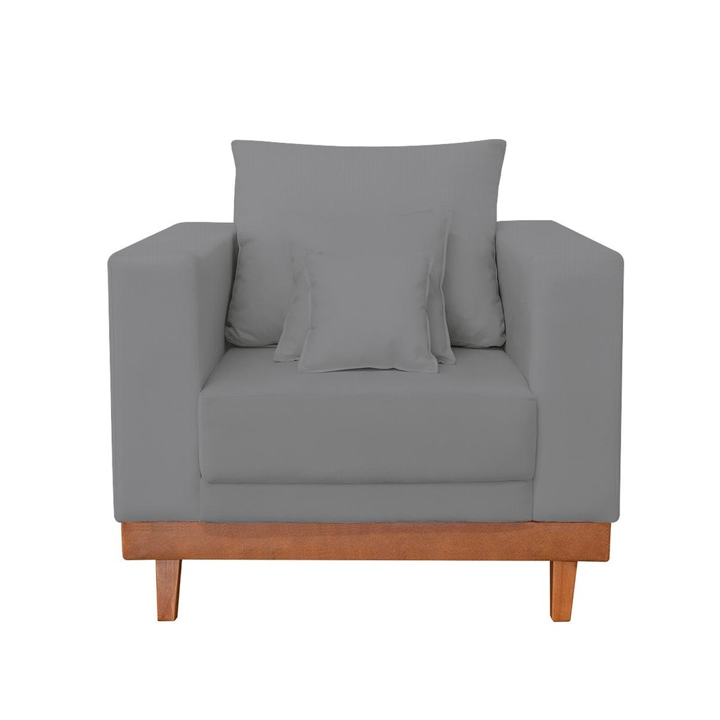 Kit Poltrona Living + Sofá 2 Lugares com Base Madeira Linho