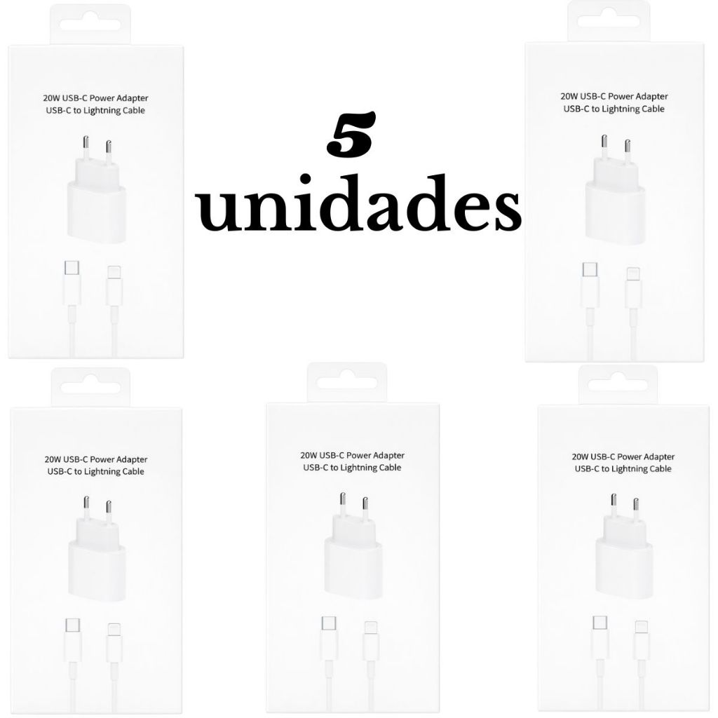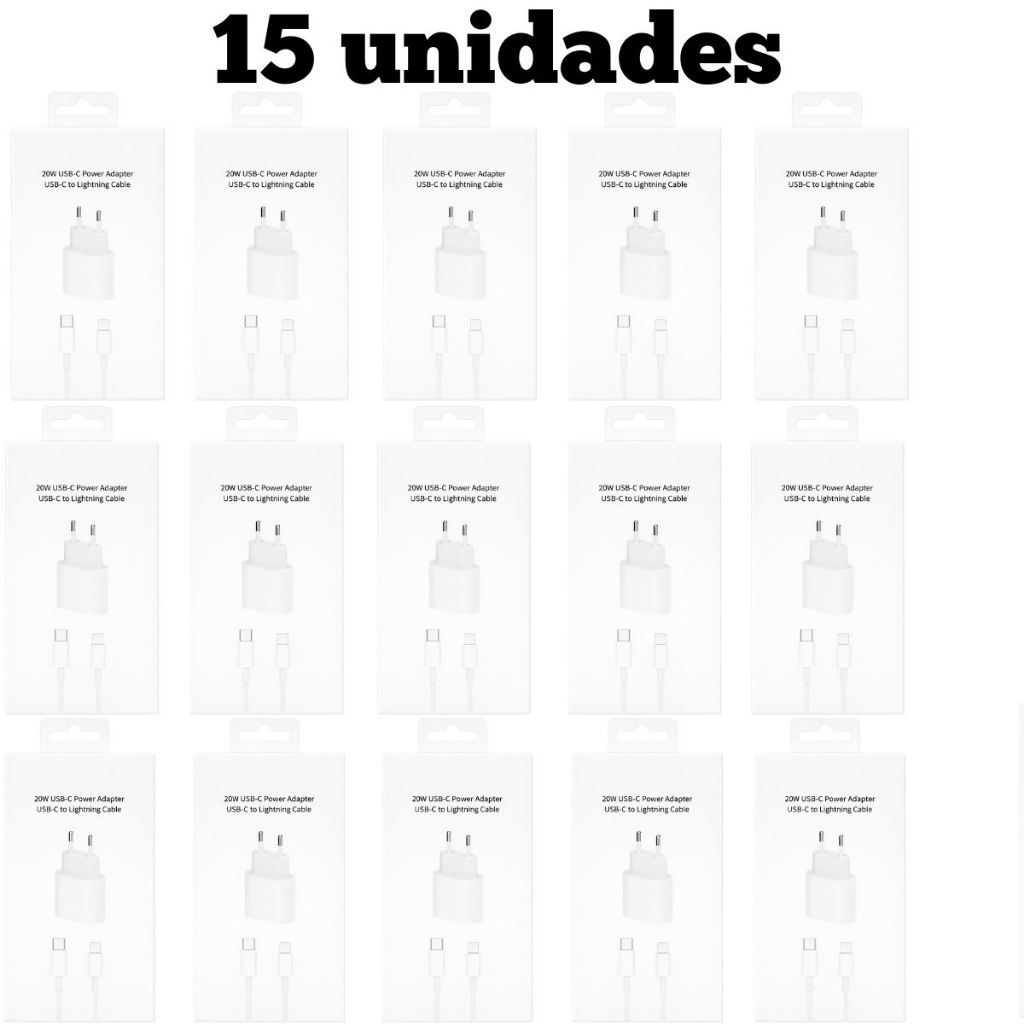 Kit 5 10 e 15 pcs Carregador iPhone Turbo 20W Fonte + Cabo USB-C Lightning Rápido