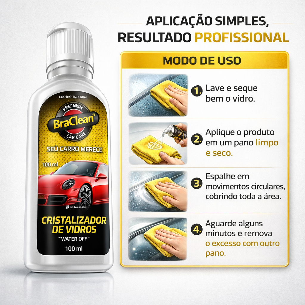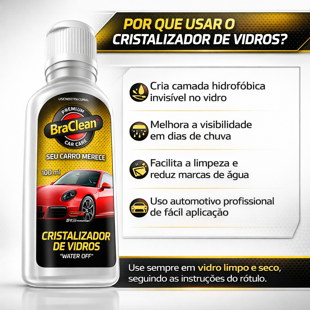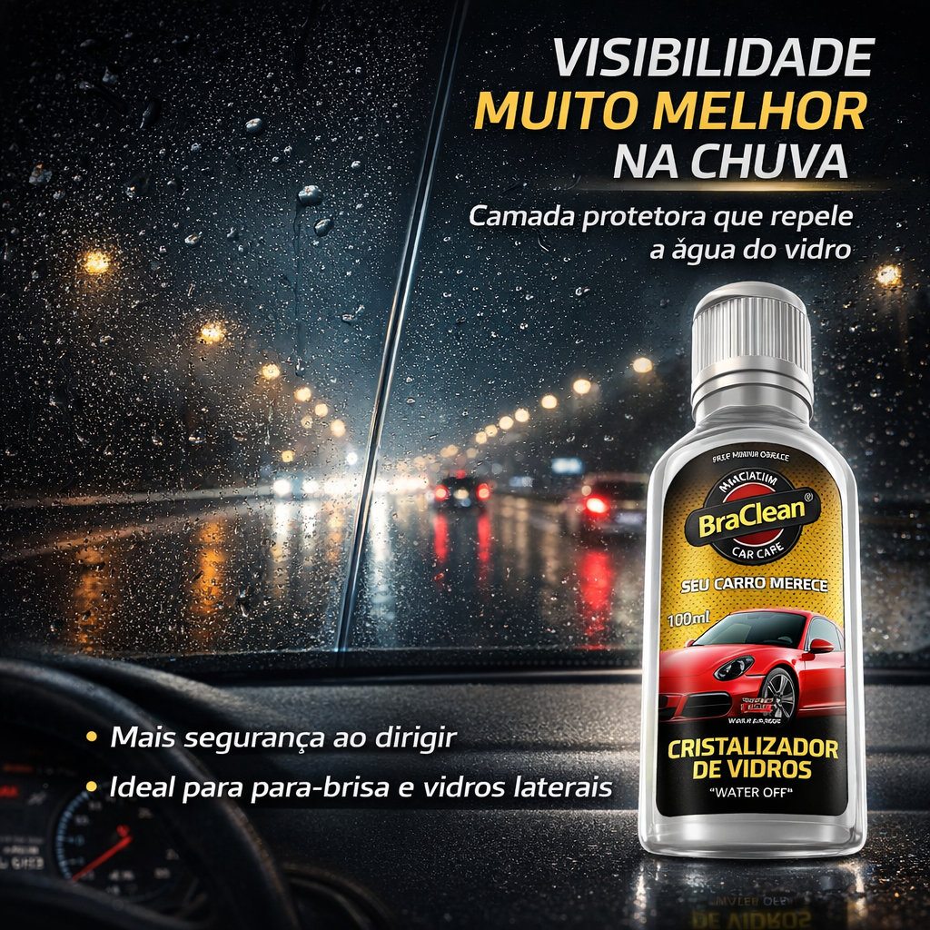 Melhor Cristalizador de Vidros 100 ml Water Off Repelência de Água e Visibilidade BraClean