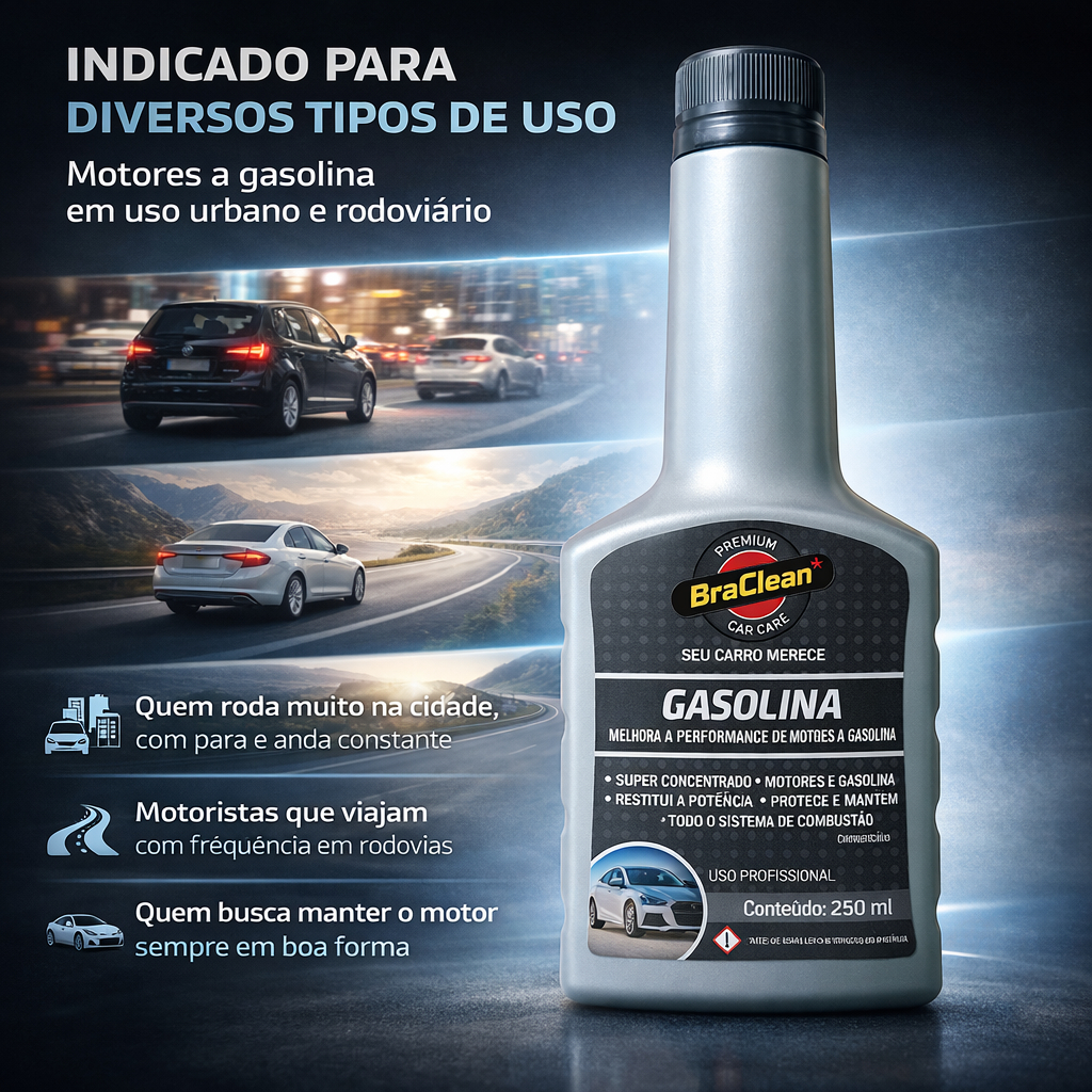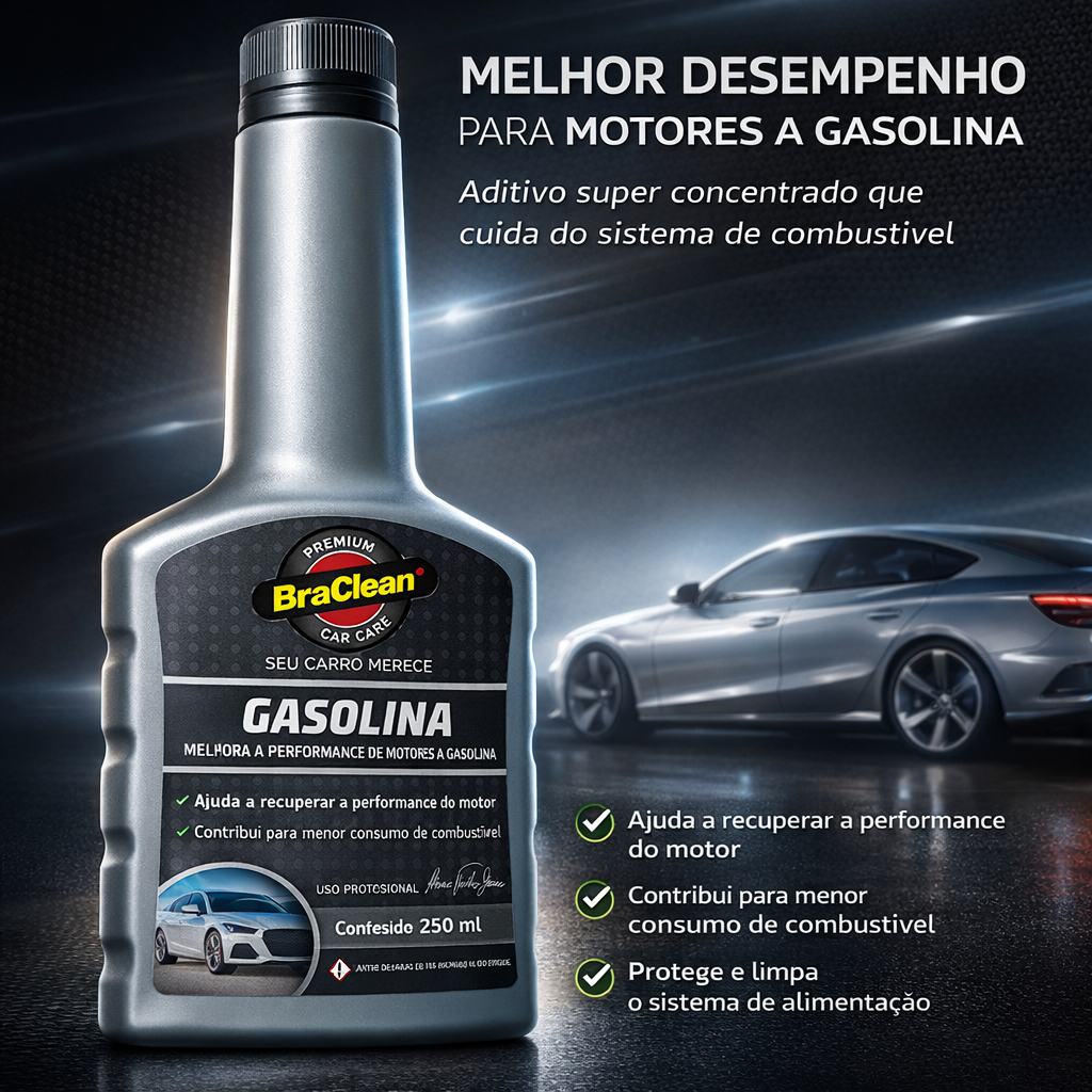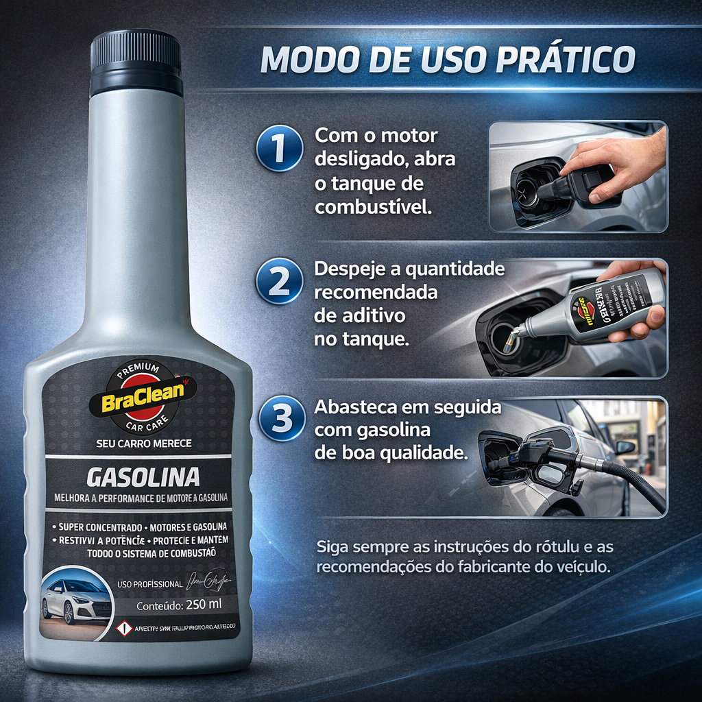 Melhor Kit 3 Aditivo Combustivel Gasolina 250ml limpeza de bicos e sistema via tanque BraClean