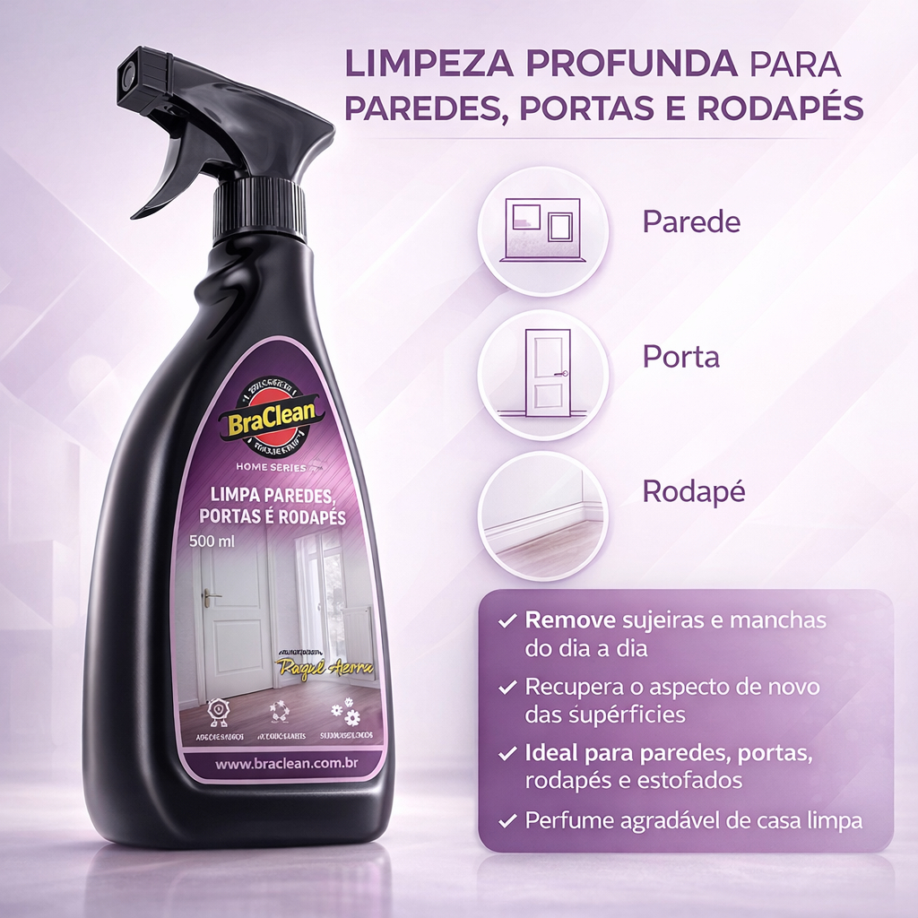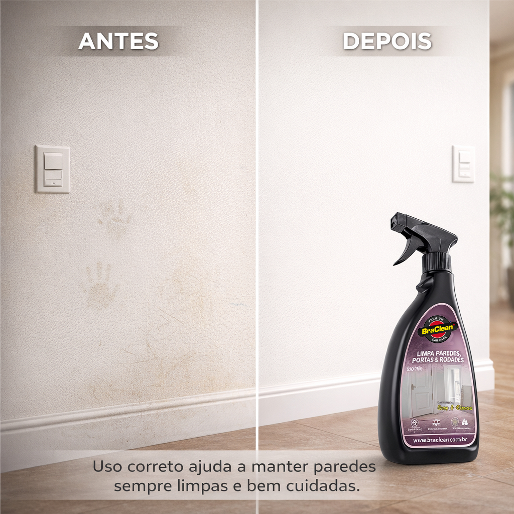 Melhor Limpa Paredes Portas e Rodapés 500ml remoção de marcas e poeira doméstica BraClean