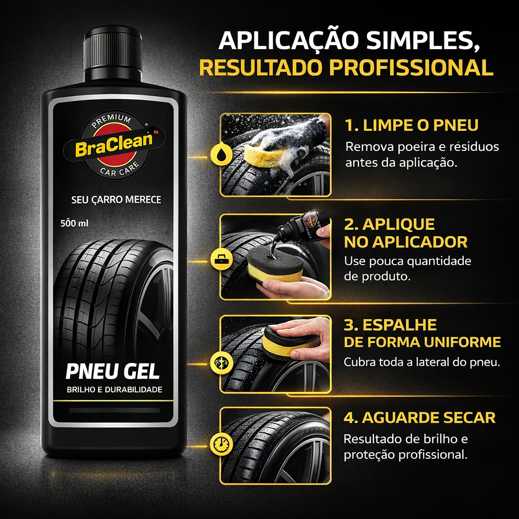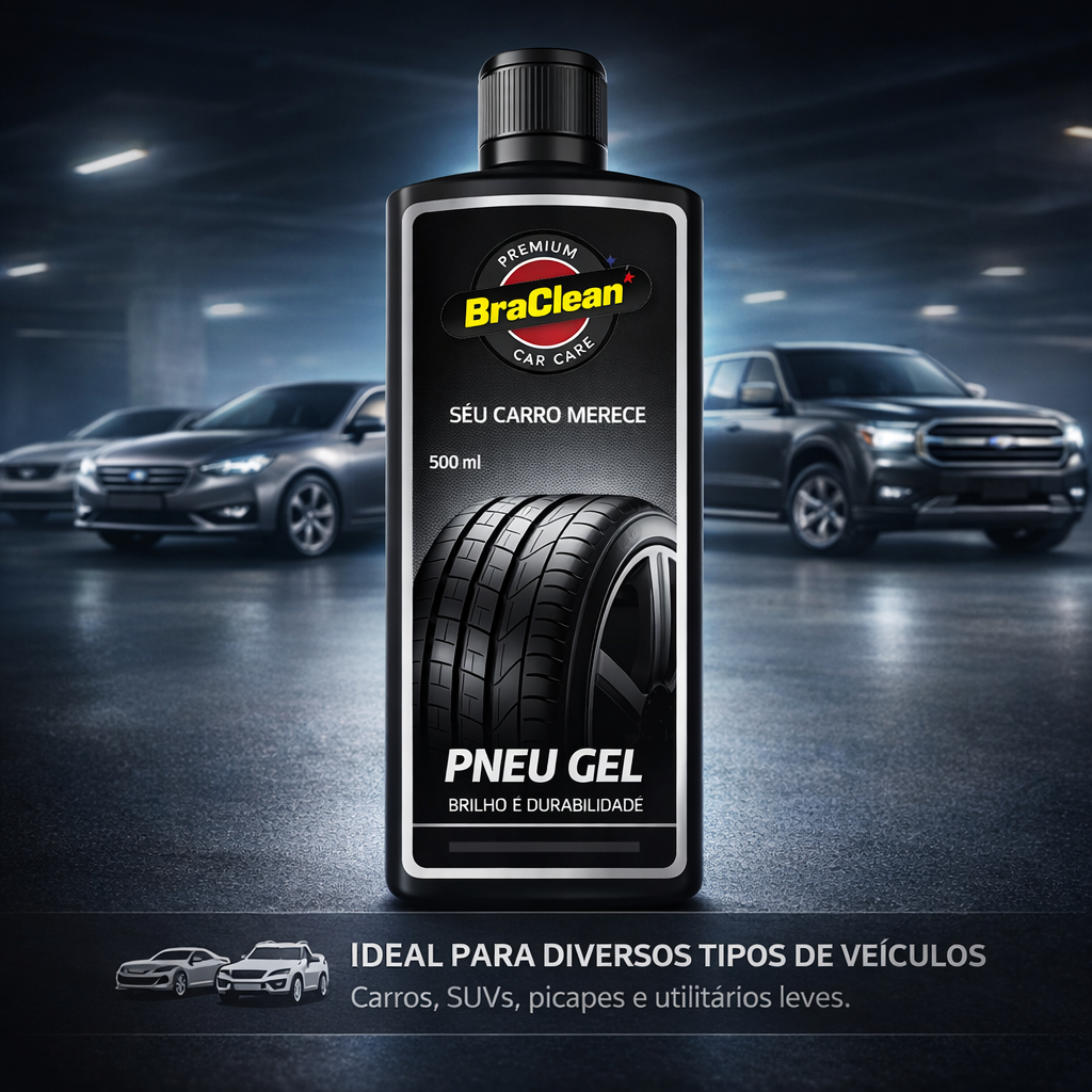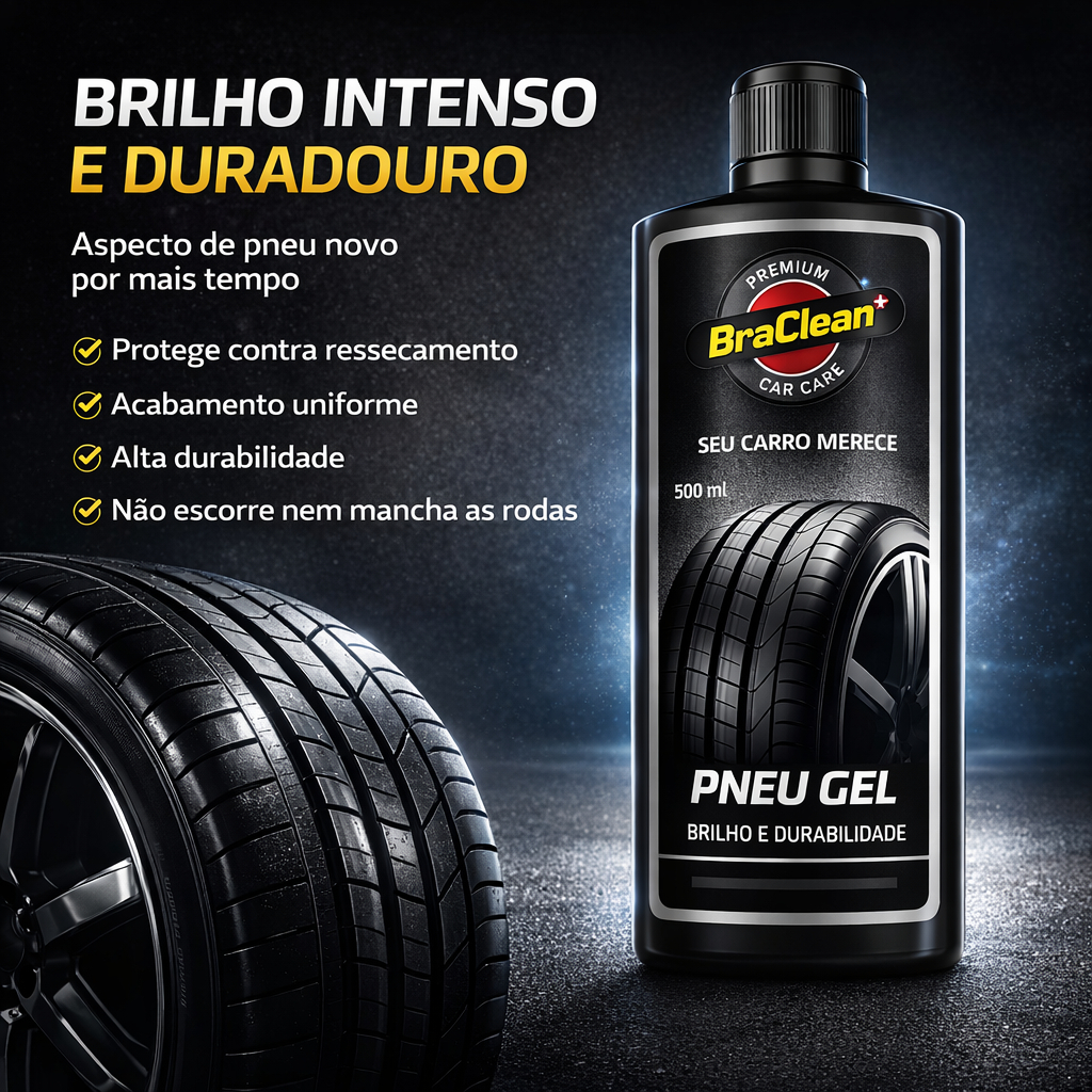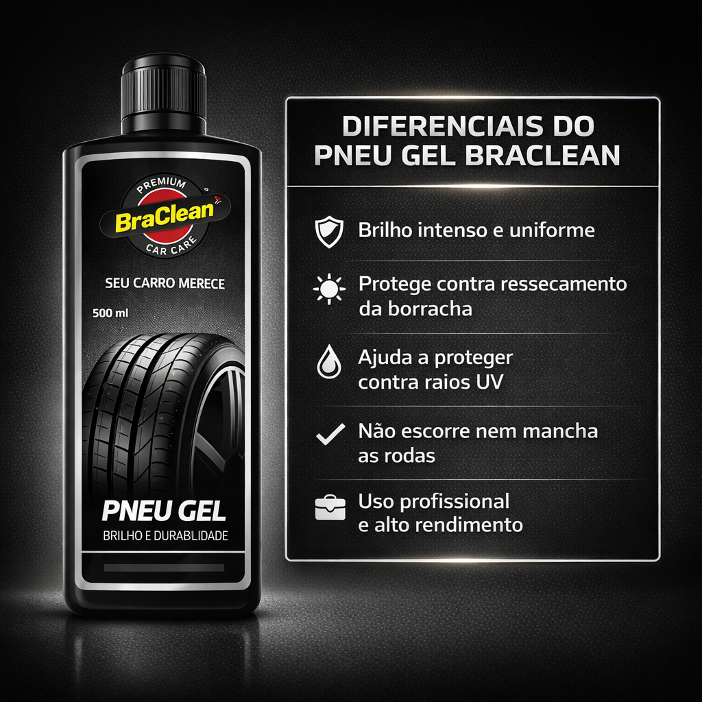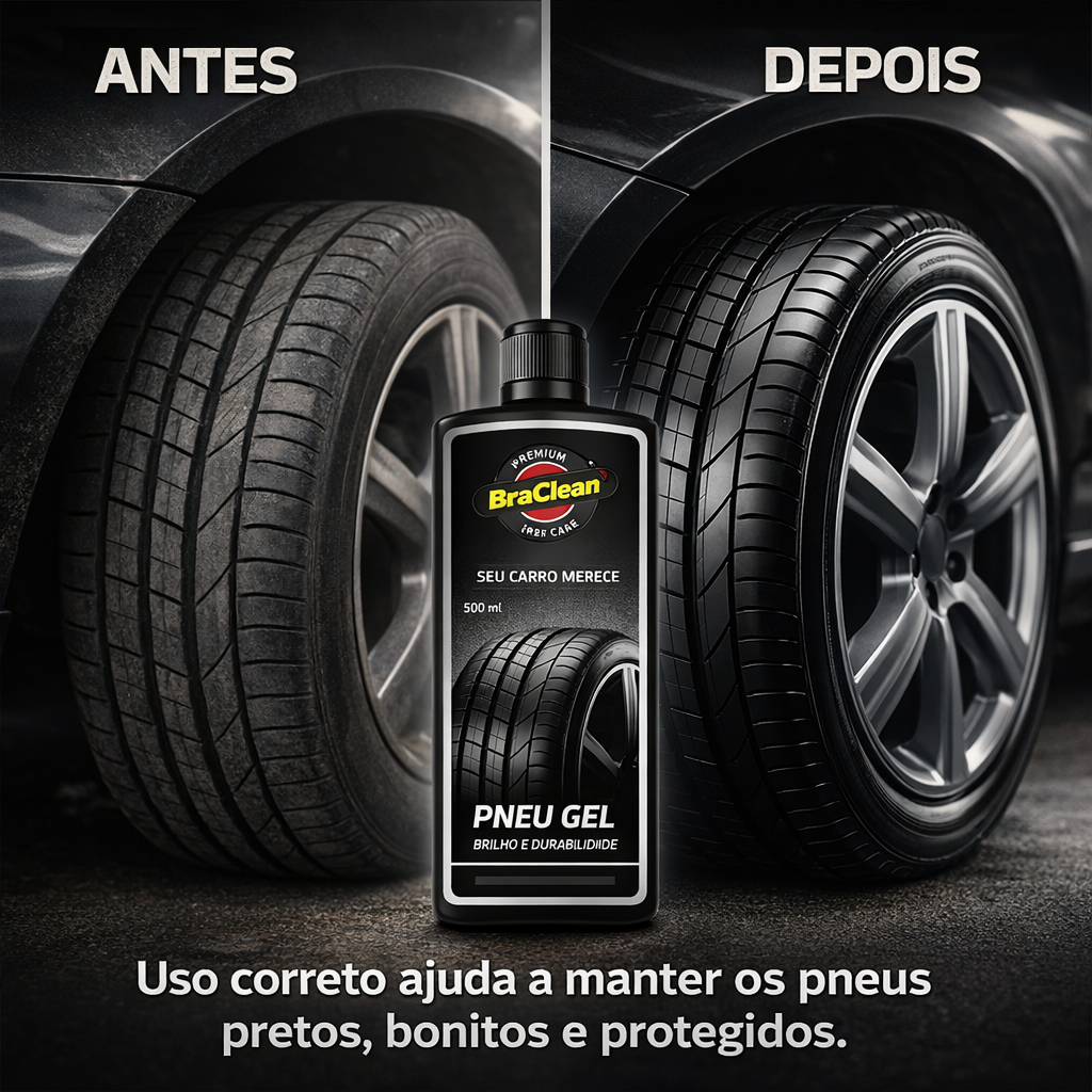 Melhor Pretinho Pneu Gel 500ml - Limpa, Protege e Intensifica Cor - BraClean