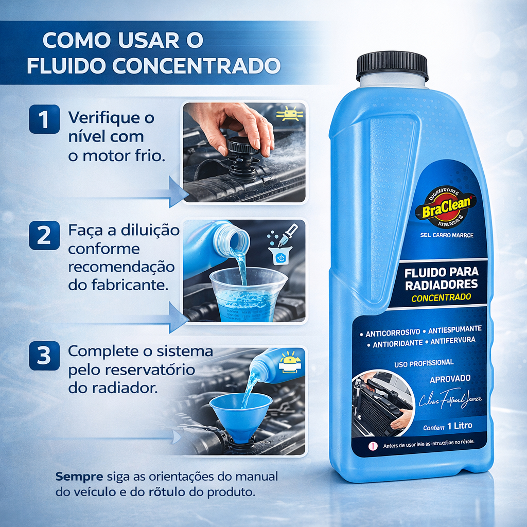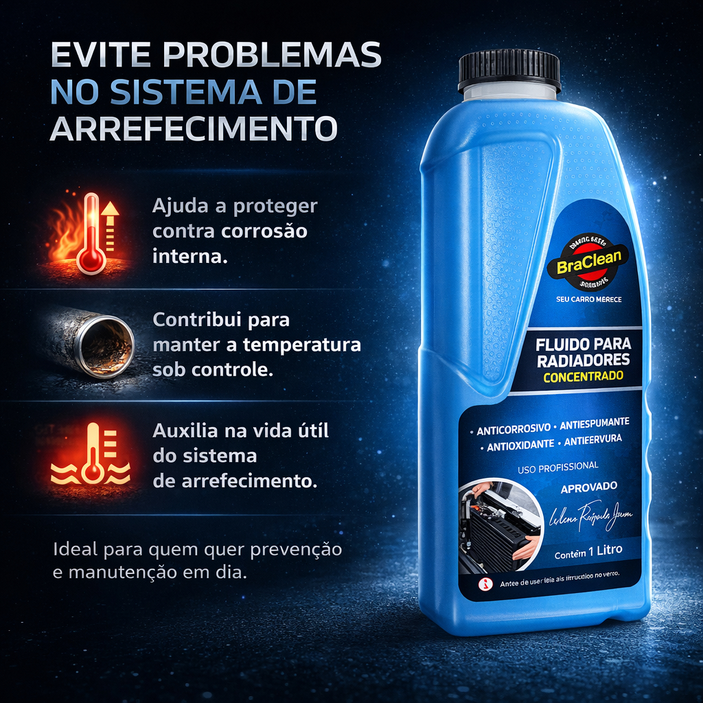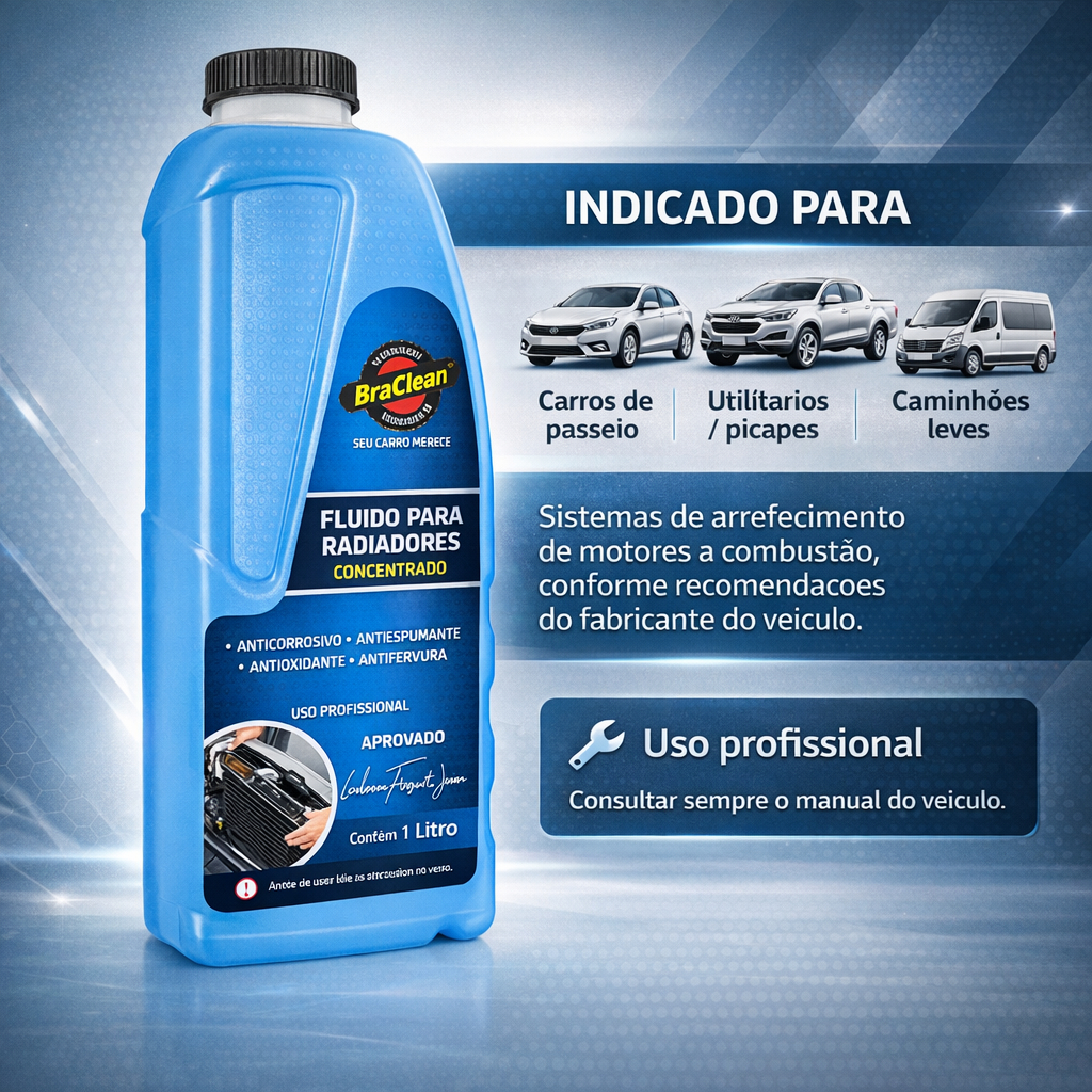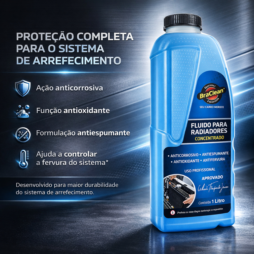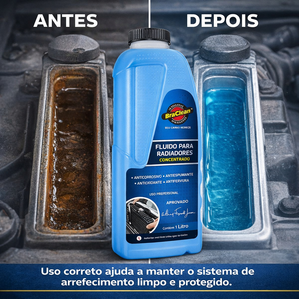 Melhor Fluido Radiador 1L Azul Sem MEG Controle Térmico Proteção Anticorrosiva BraClean