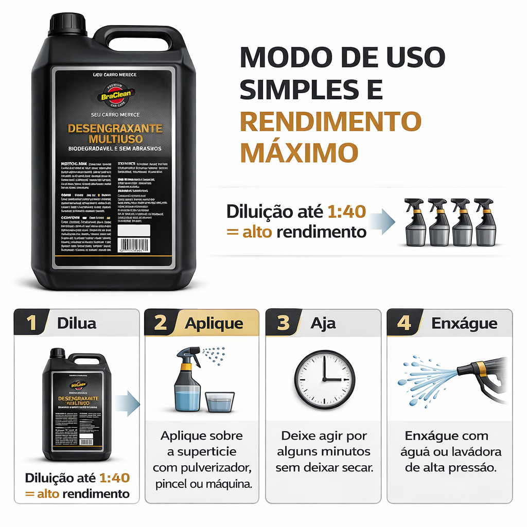 Melhor Desengraxante 5 Litros 1 para 40 Multiuso Remoção de Óleo e Graxa Uso Intenso BraClean