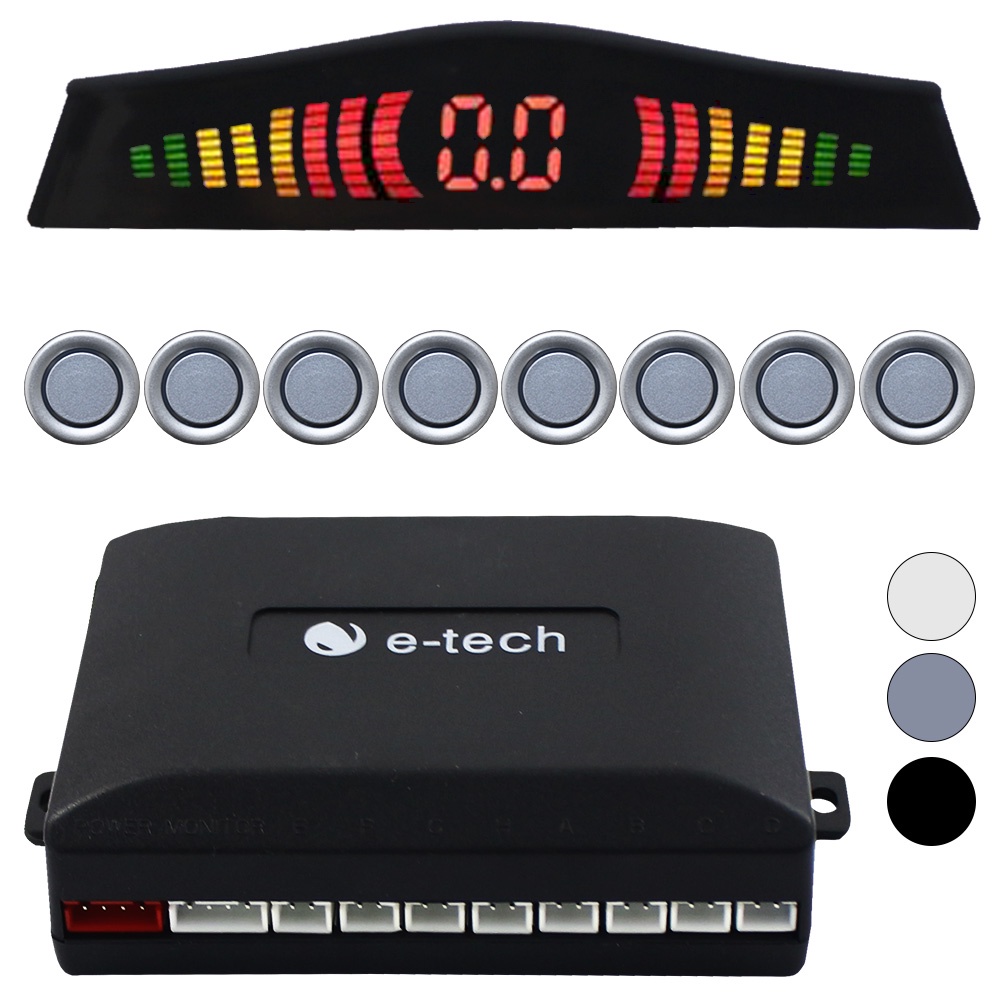 Sensor Estacionamento Ré 8 Pontos E-Tech Universal Dianteiro Traseiro Display Led Kit