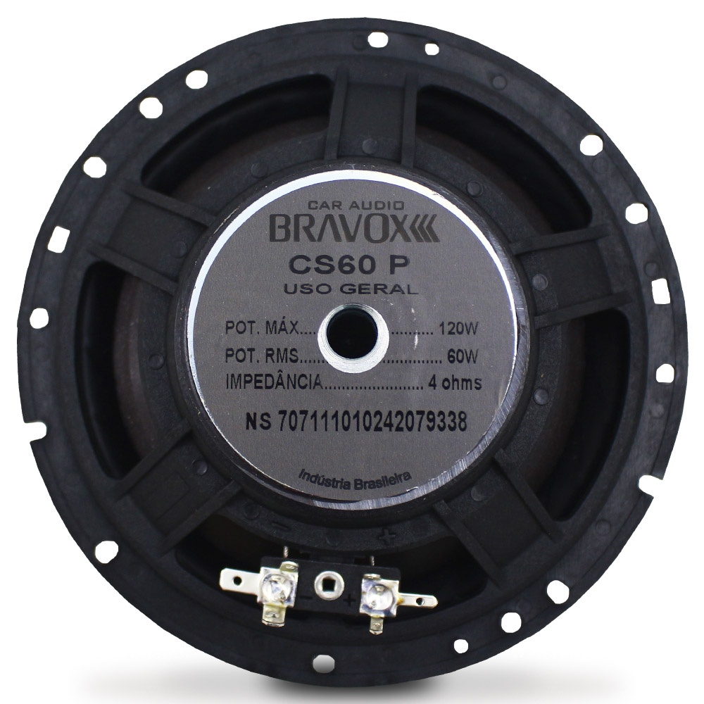Kit 2 Vias Bravox 6 Polegadas CS60-P 120w Rms Par Alto Falante Mini Tweeter Painel Total 200w Rms