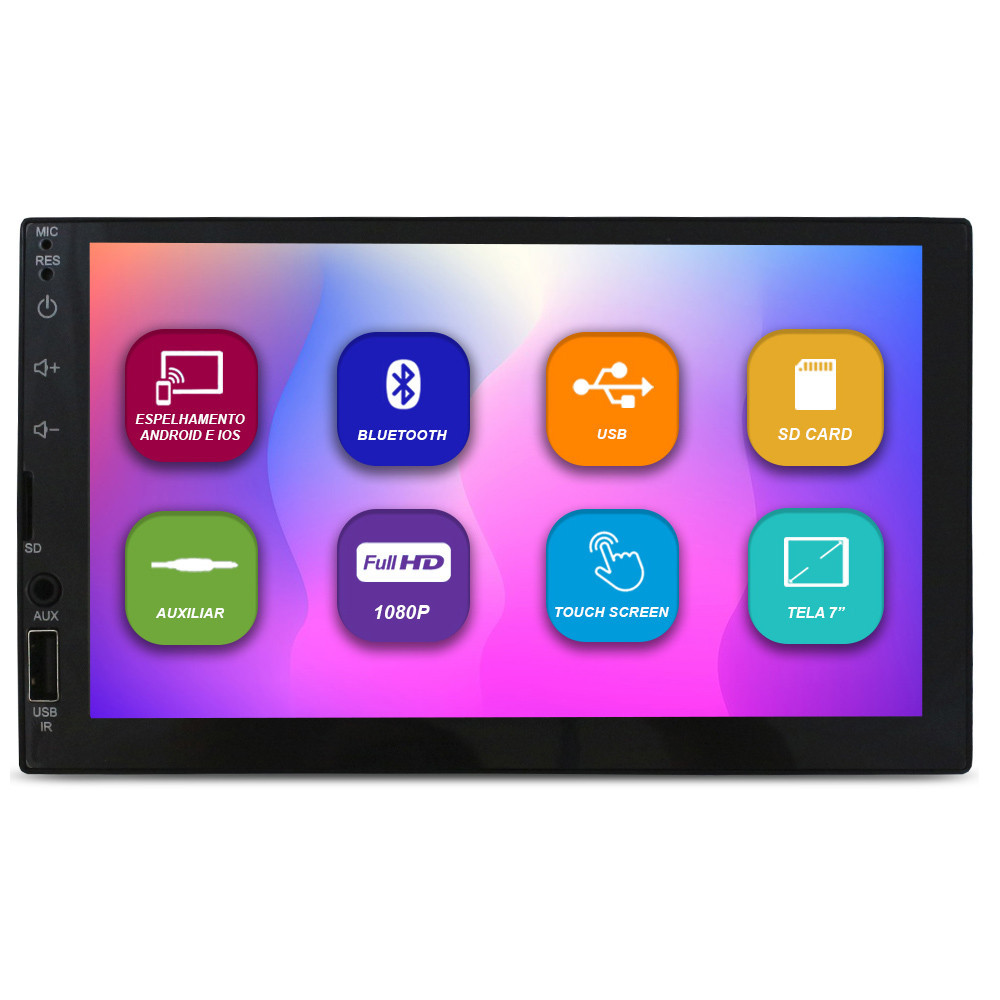 Kit Multimídia 7 Pol March Versa 2014 2015 2016 2017 2018 2019 2020 Espelhamento Android Ios 2 Din Preto Camera Ré