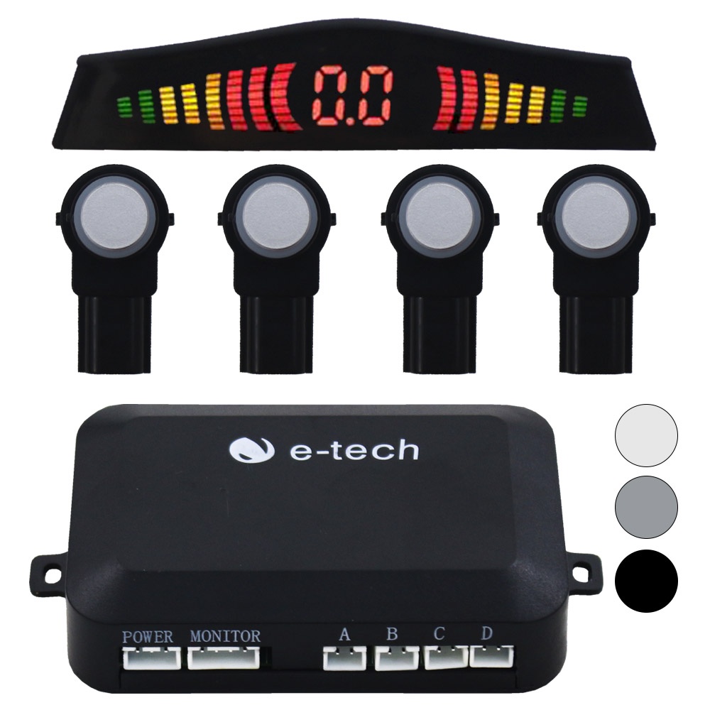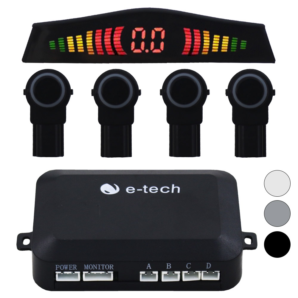 Sensor Estacionamento Ré Embutido OEM E-Tech Universal Traseiro Padrão Original Display Led Kit