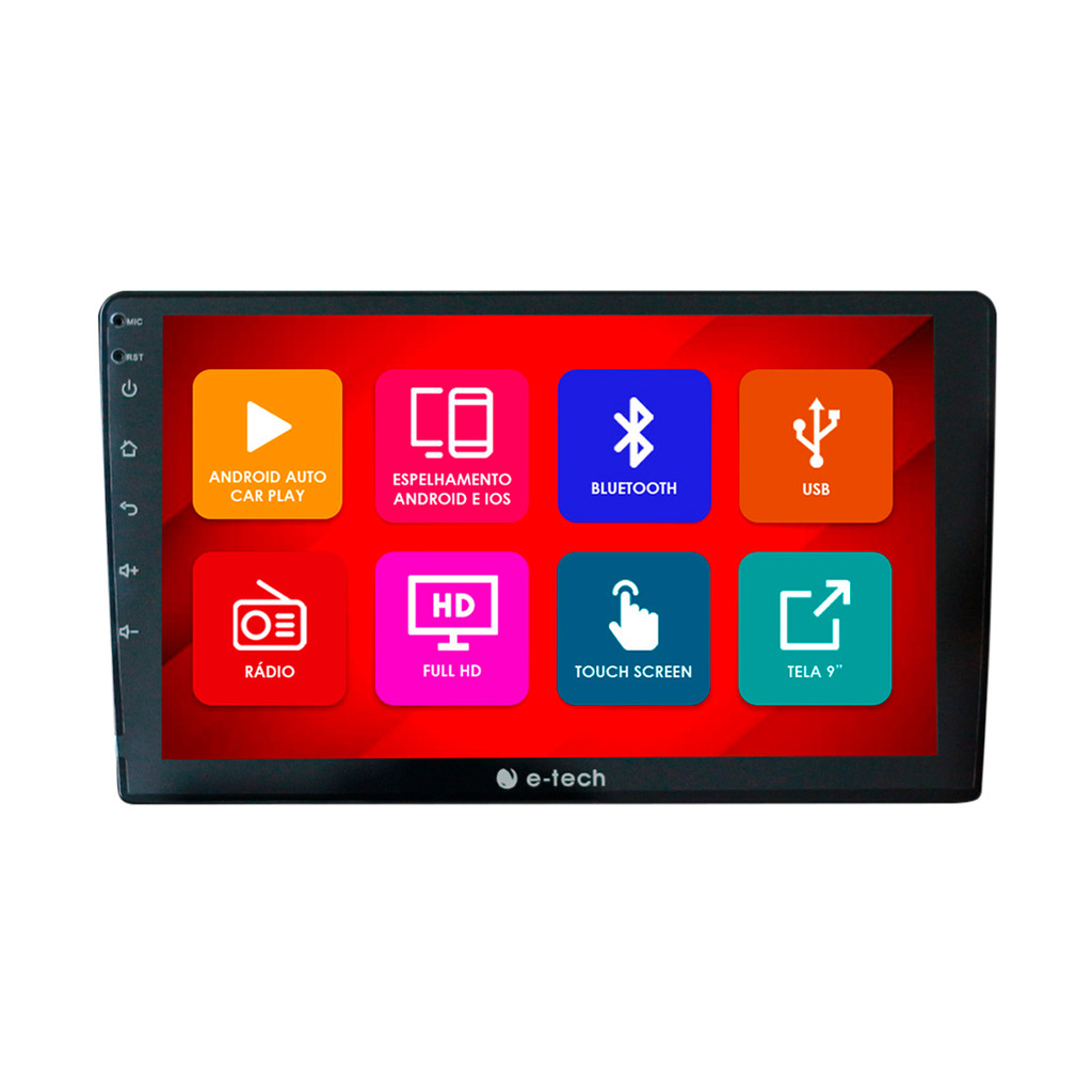 Kit Multimídia 9 Pol Ranger 2010 2011 2012 2013 2014 Android Auto CarPlay Qa+ 2 Din Preto Espelhamento Android Ios
