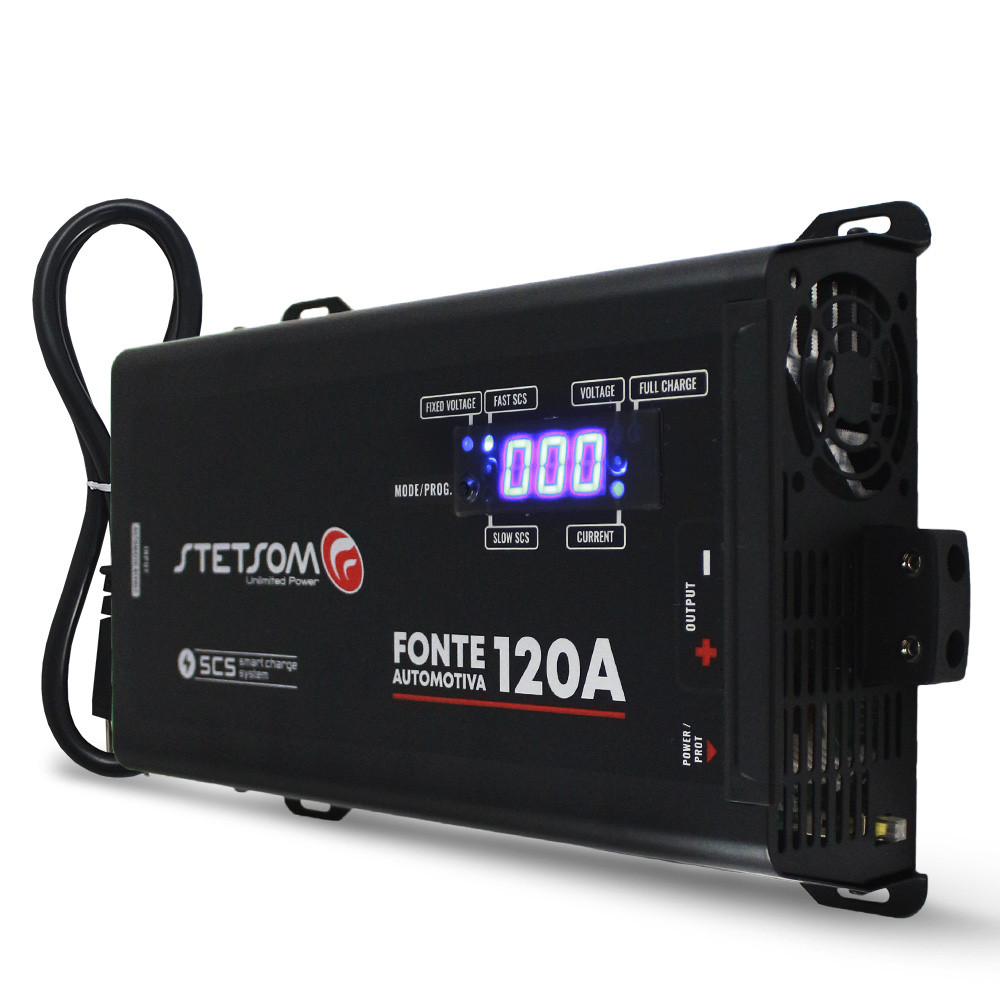 Fonte Automotiva Stetsom 120-a Bivolt Digital 12v SCS Voltímetro Amperímetro Smart Charger
