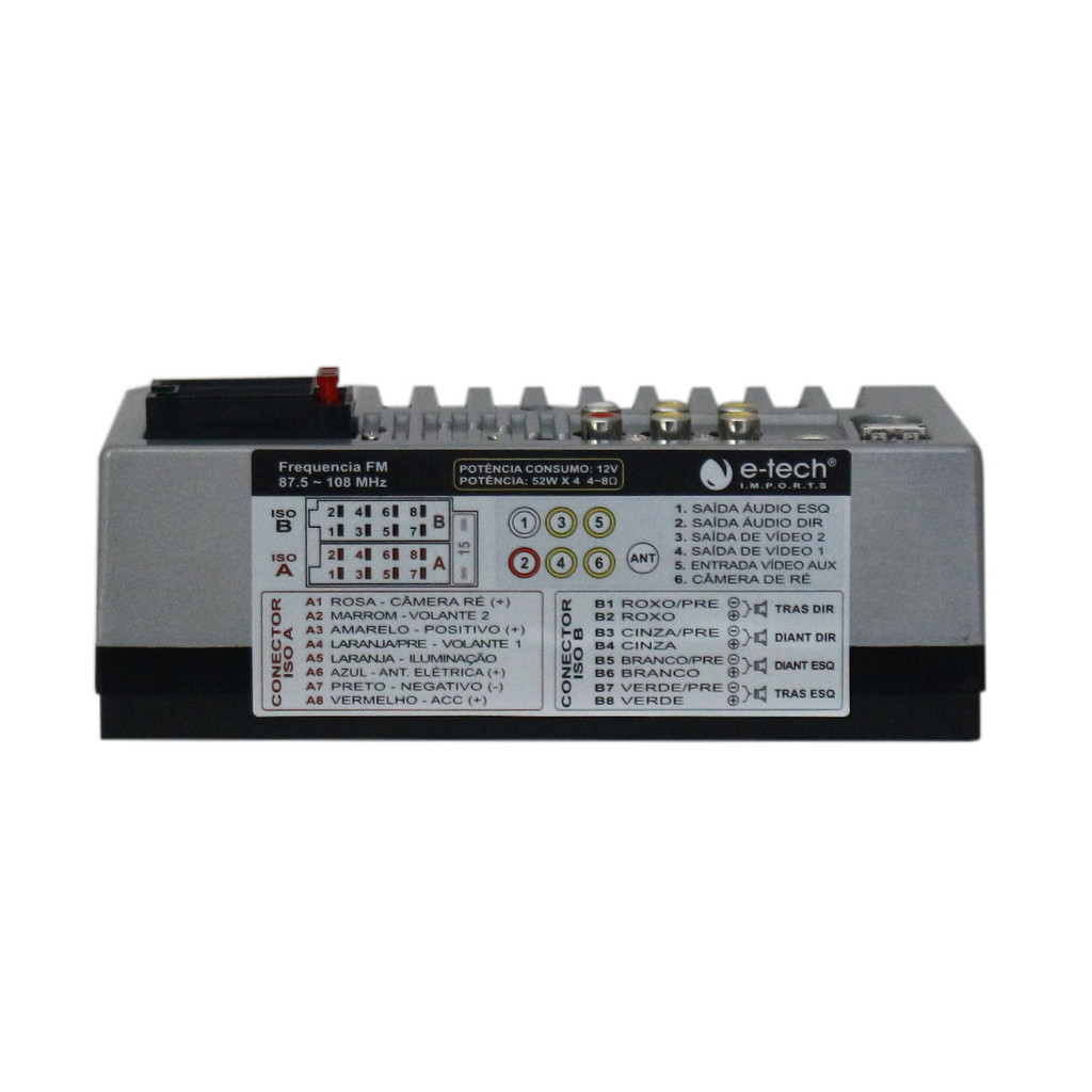 Central Multimidia 2 Din 7 Pol E-Tech Combat Android Auto Carplay Espelhamento Bluetooth USB FM Tela Full HD