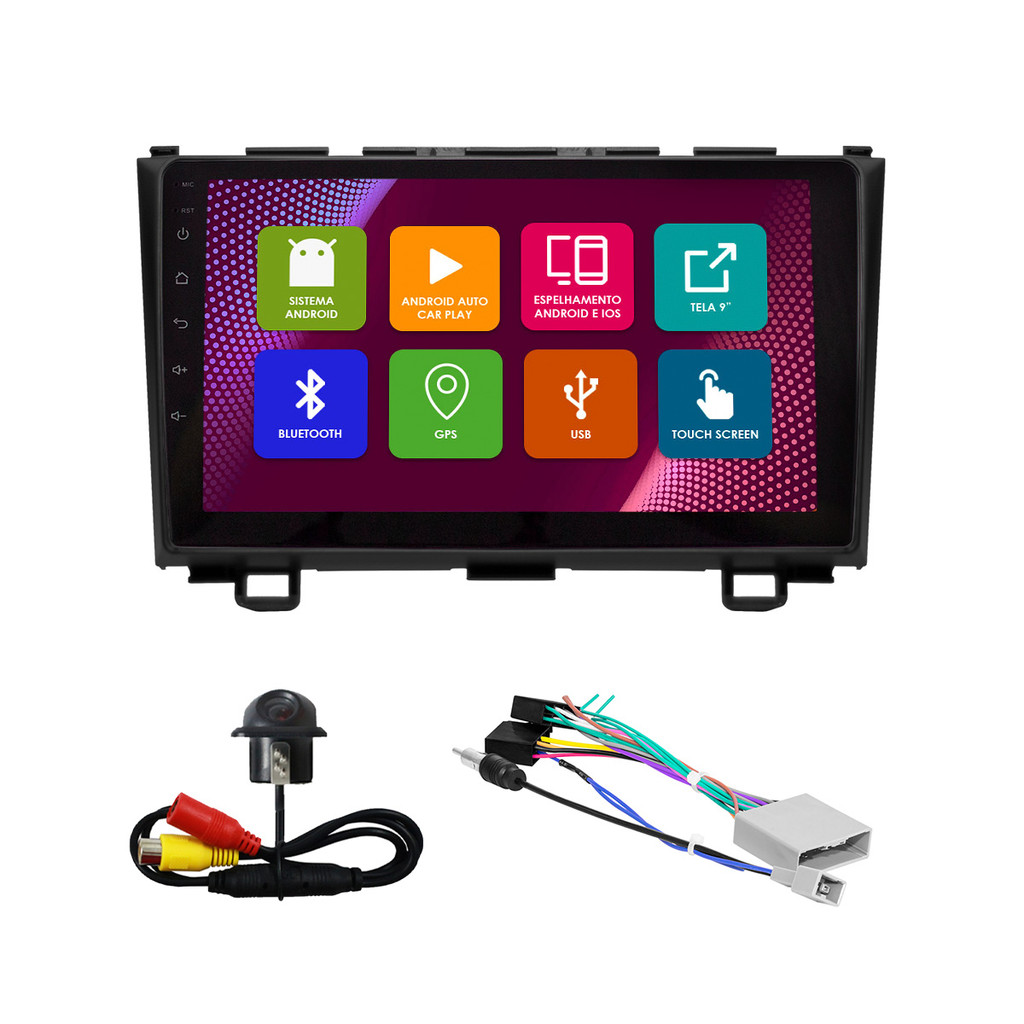 Kit Multimídia 9 Pol CR-V 2008 2009 2010 2011 Android 2Gb Ram 32Gb Flash Quad-Core 2 Din Preto Wifi Gps Ips
