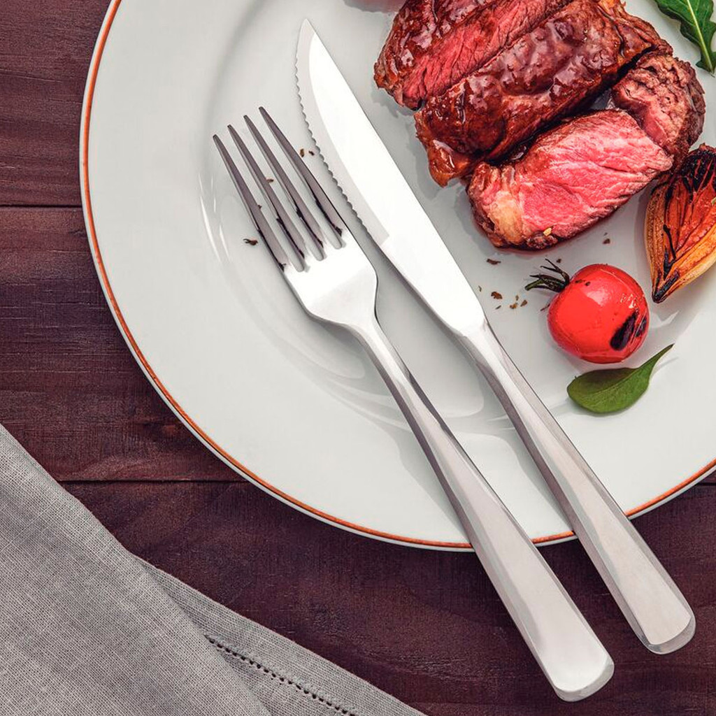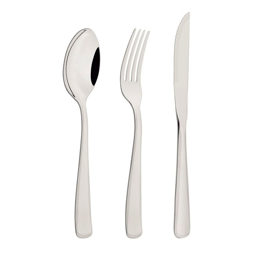 Faqueiro Tramontina Pacific Aço Inox Com Facas Churrasco Acabamento Alto Brilho Detalhes Cabo 72 Peças