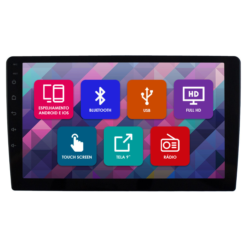 Kit Multimídia 9 Pol BMW Série 1 2007 2008 2009 2010 2011 Espelhamento Android Ios 2 Din Preto Camera Ré