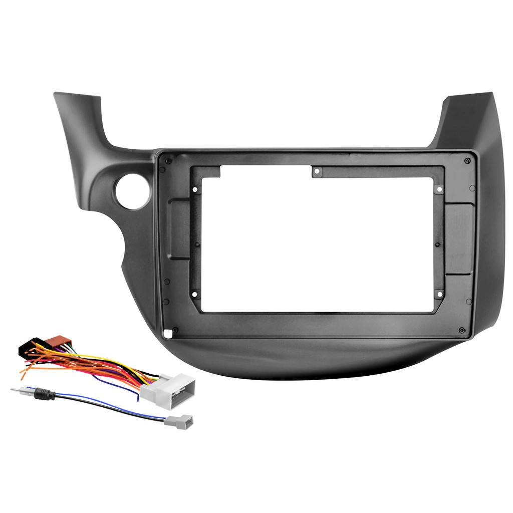 Kit Moldura Painel 10 Pol Fit 2009 2010 2011 2012 2013 2 Din Grafite Chicote Som Plug Antena