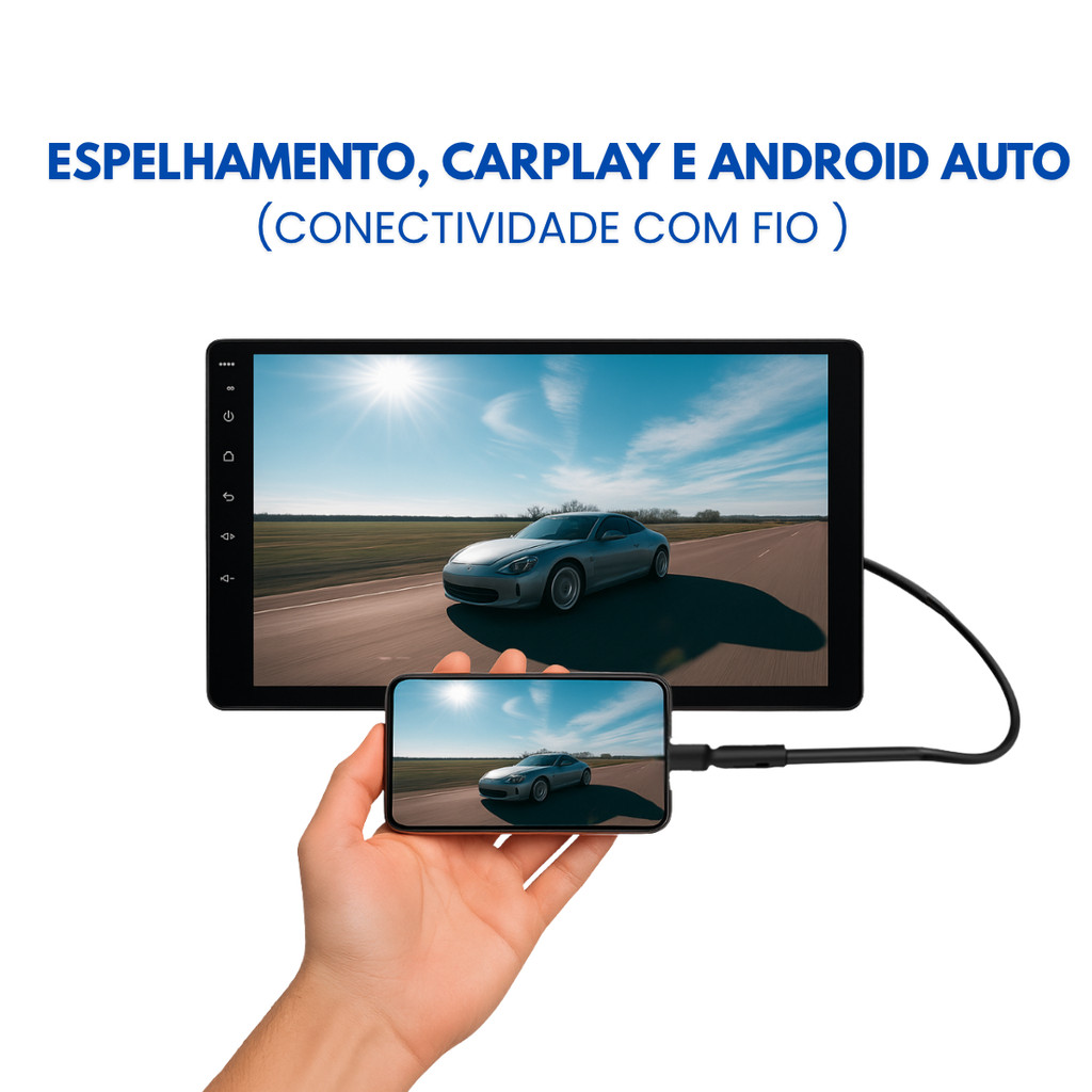 Central Multimídia 9 Pol Android Auto Carplay Fio H-Tech HT-9001CA 2 Din Bluetooth Usb Fm Tela Full Hd Fundo 1 Din
