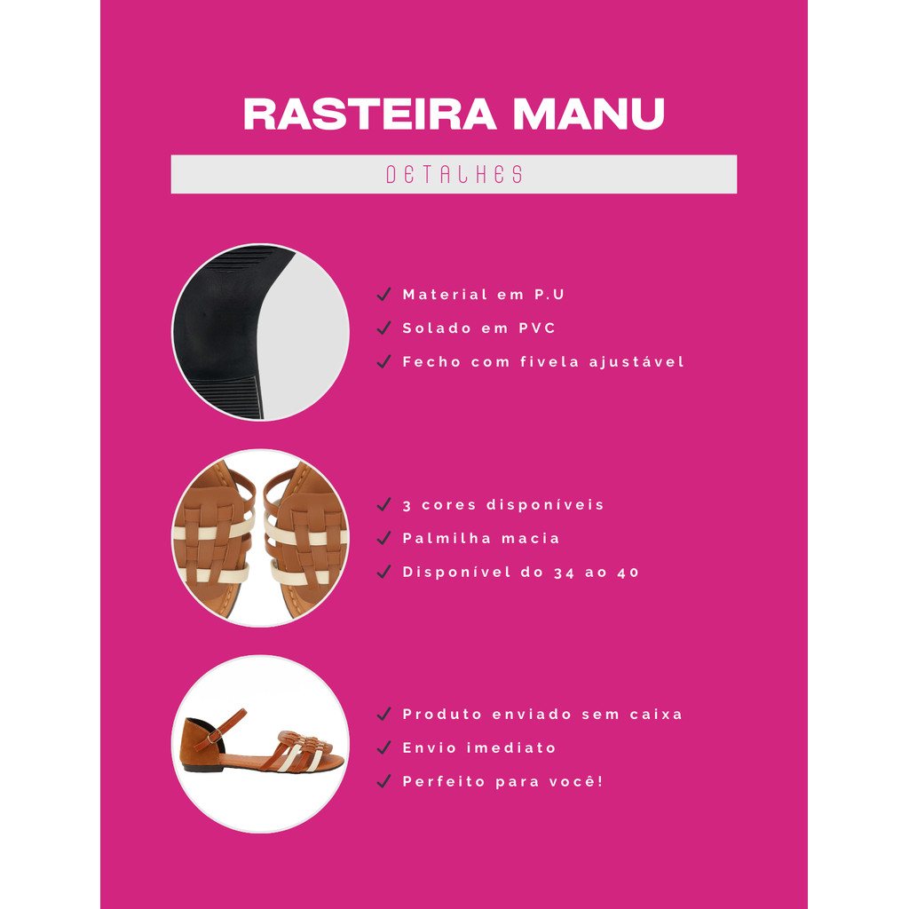 Sandália Feminina Tiras Rasteira Confortável Tiras Fisherman Manu