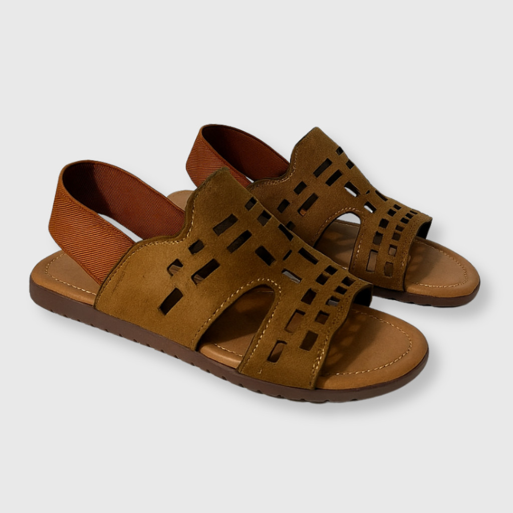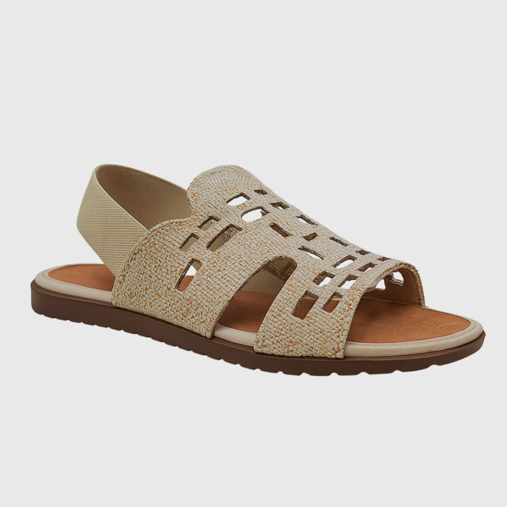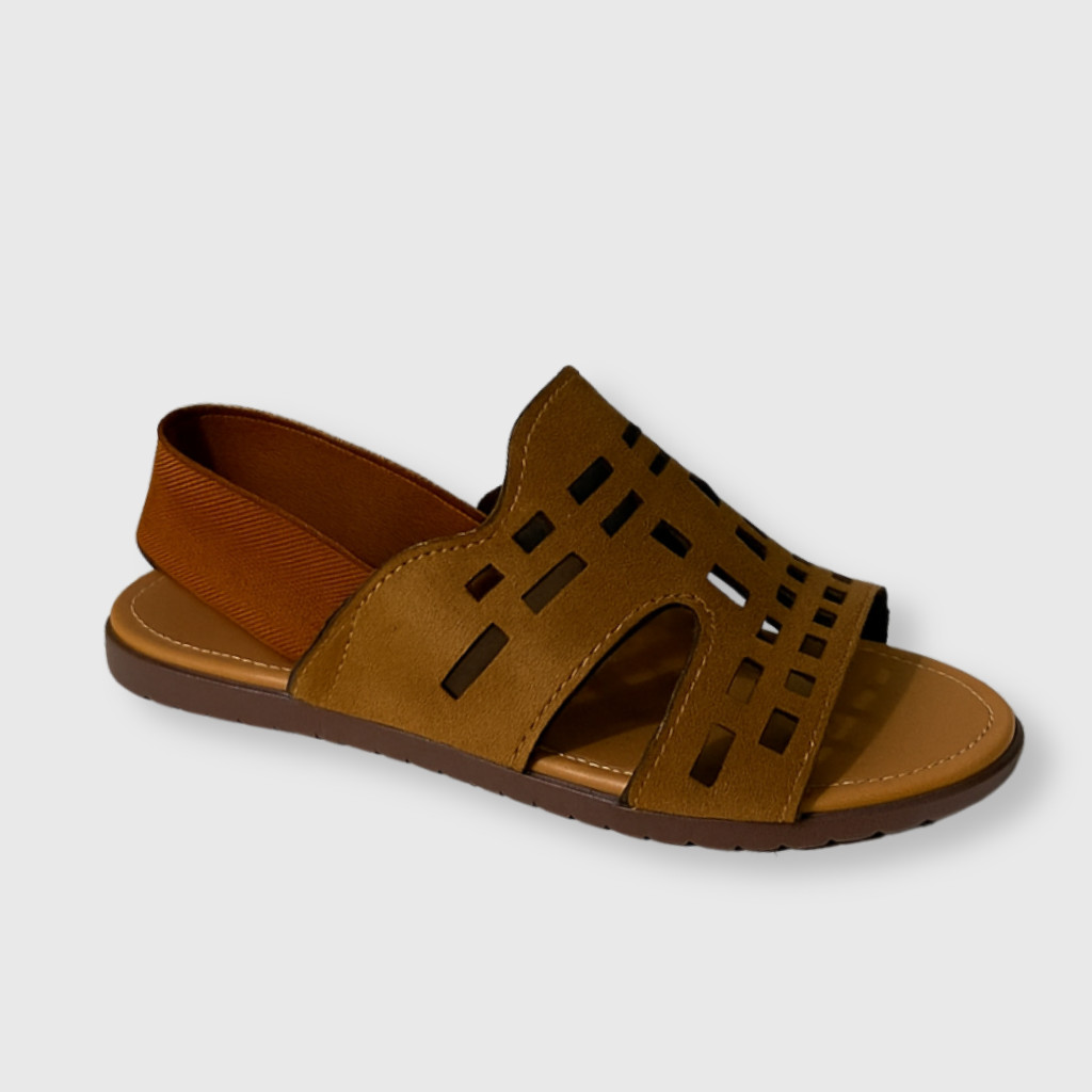 Sandália Feminina Rasteira Elástico Detalhe Camurça Vazado Confortável Deize
