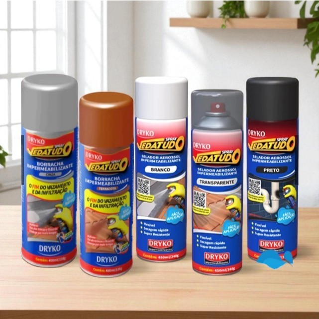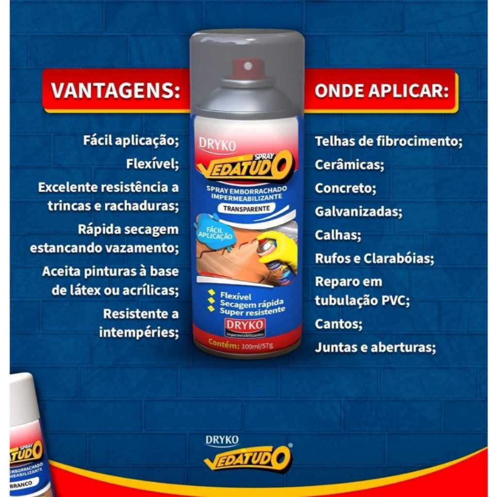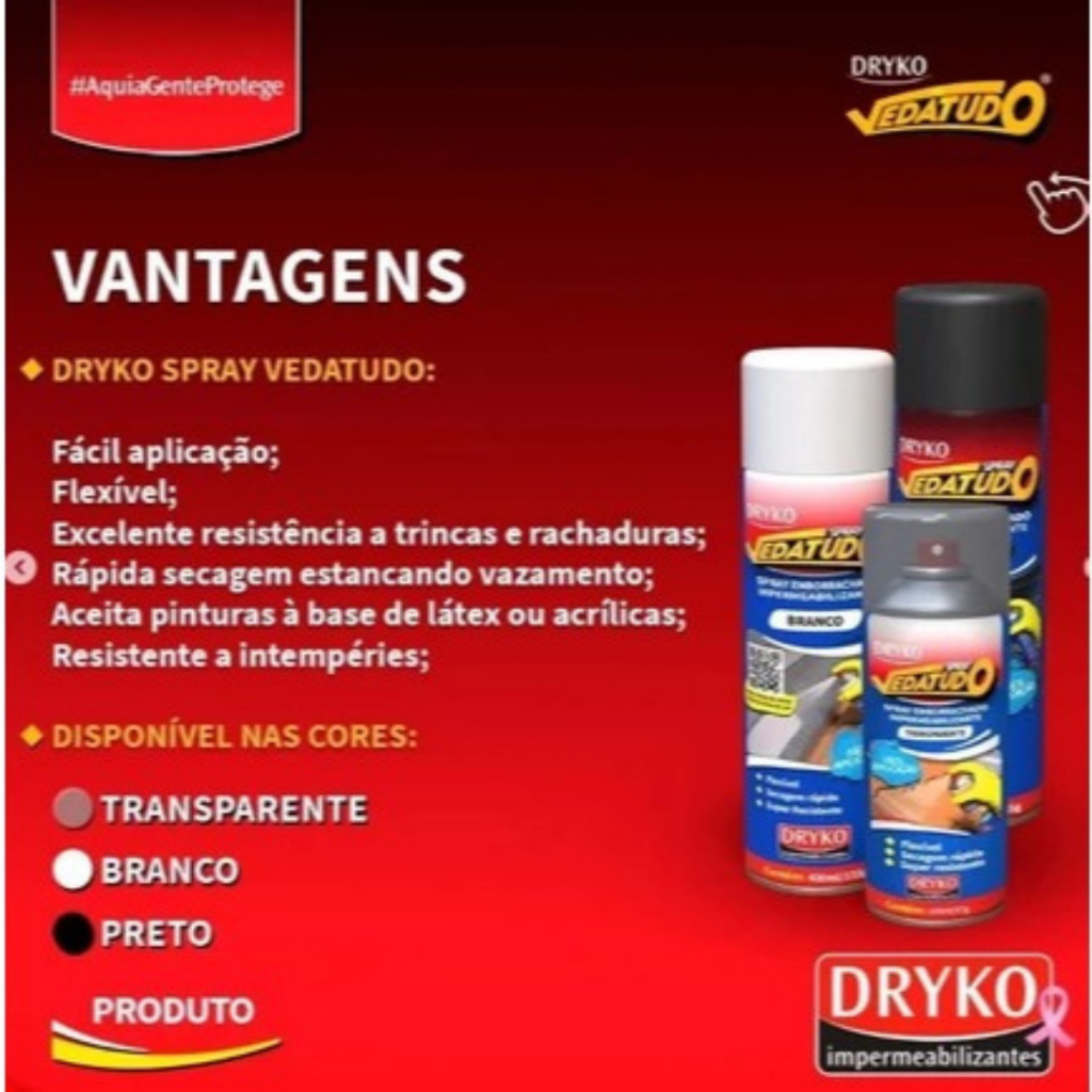 Spray Emborrachado Vedatudo Impermeabilizante Trincas Parede Telha Calha Canos Reparos Dryko 400ml