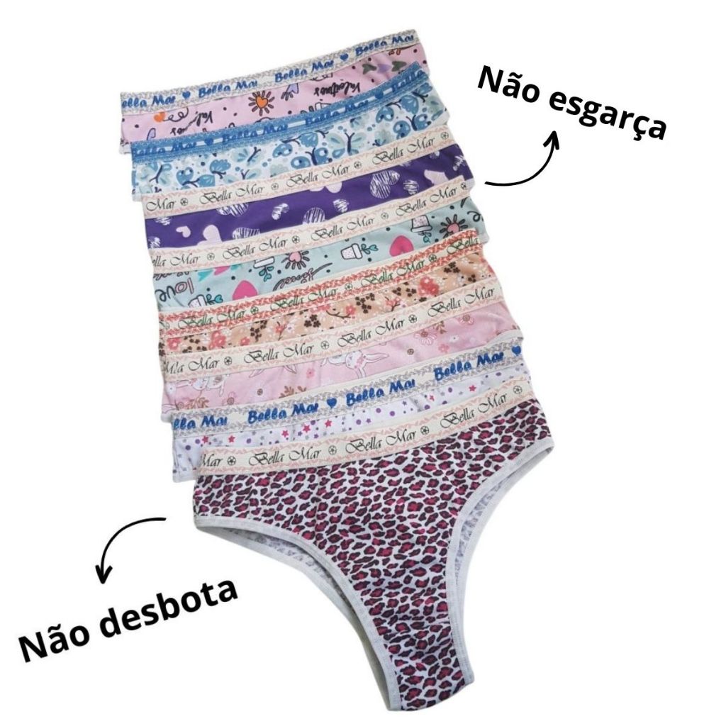 Kit 5 Calcinha Algodão Cotton Cós Alto Tanga Conforto Atacado - Julia
