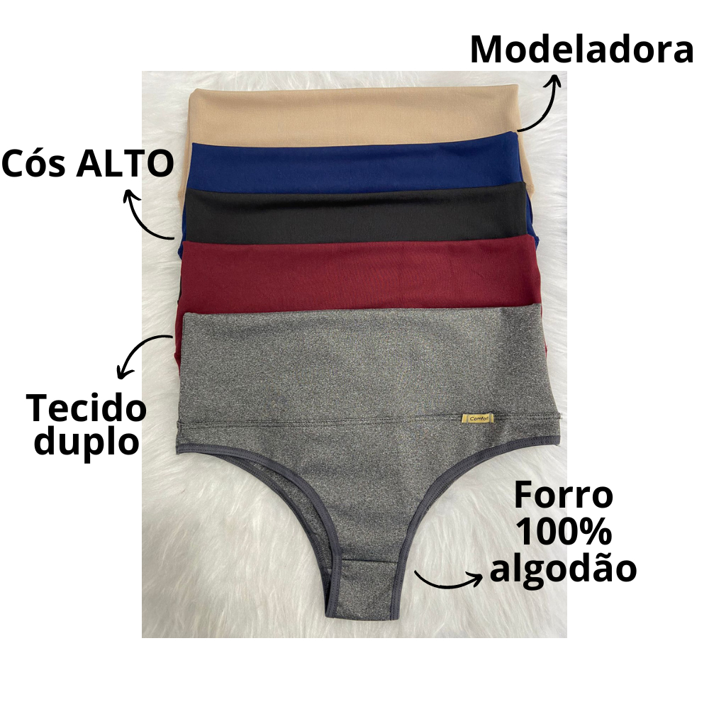 Kit 3 Calcinha Cinta Modeladora Cós Alto Maternidade Grávida - Stela
