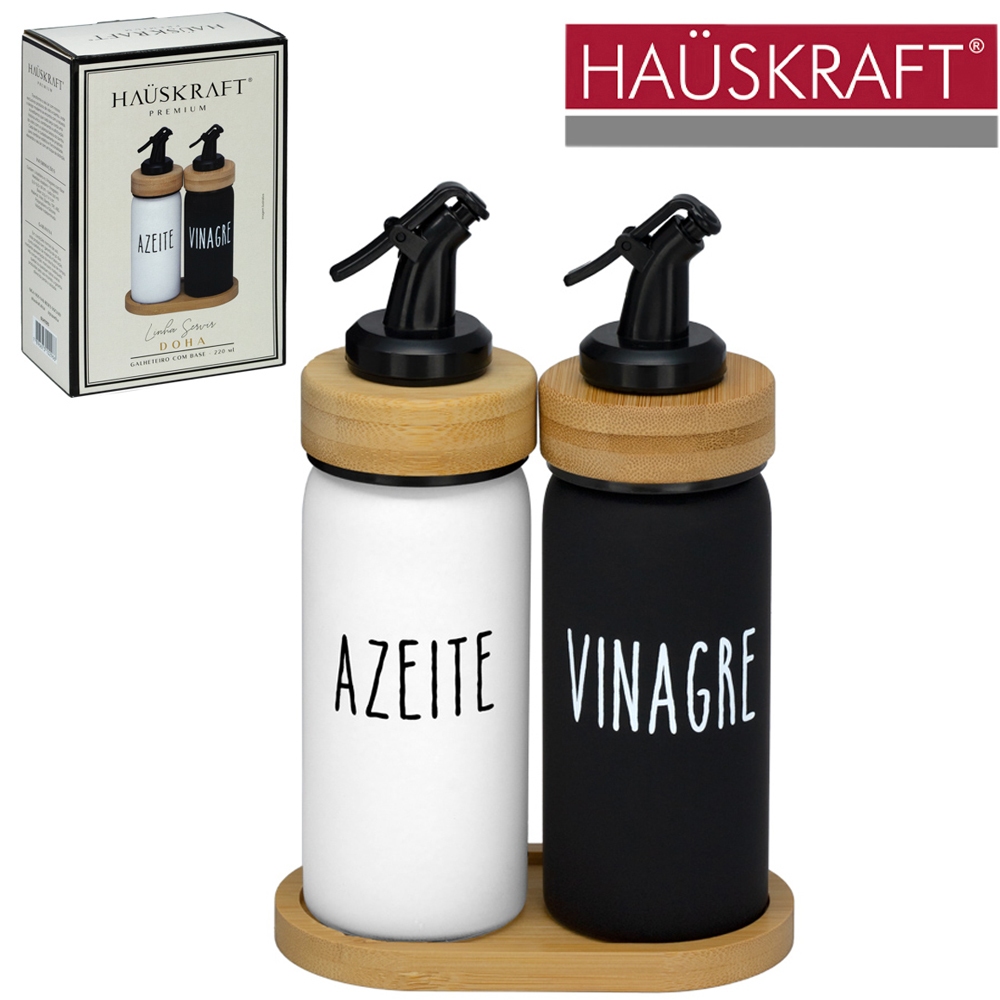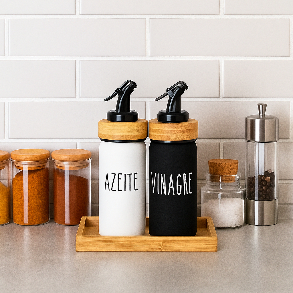 Azeiteiro com Vinagreiro de Vidro com Tampa e Suporte de Bambu Linha Servir 220ml