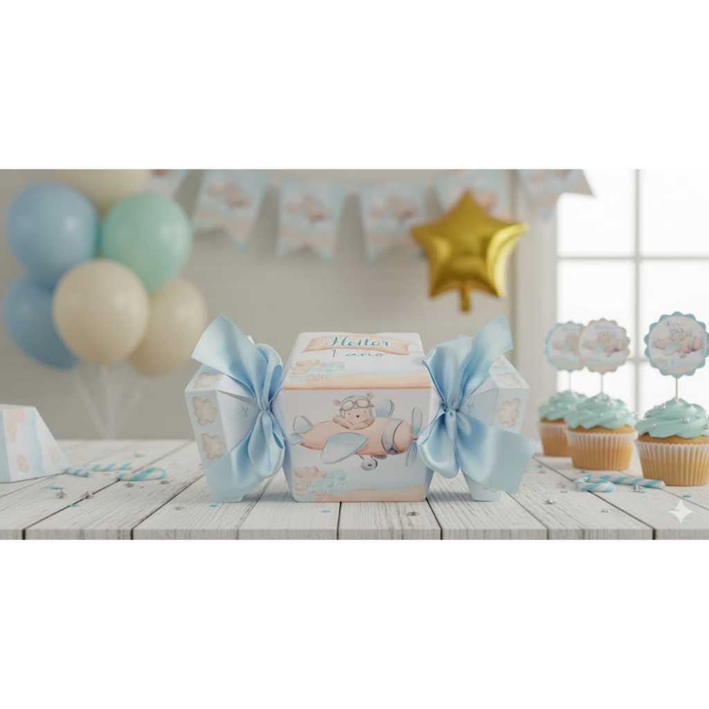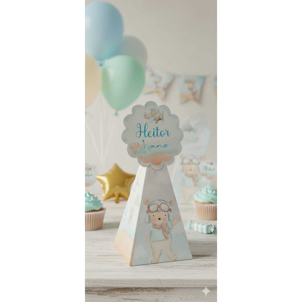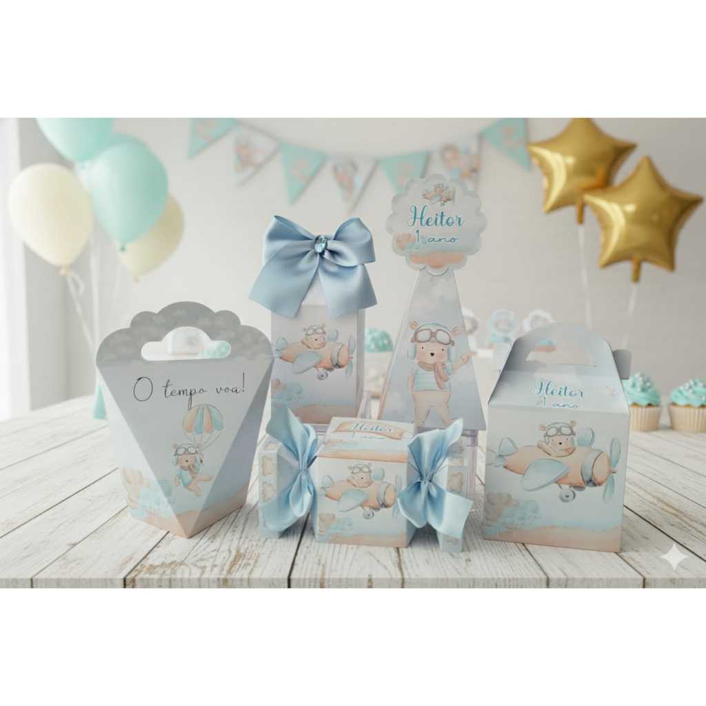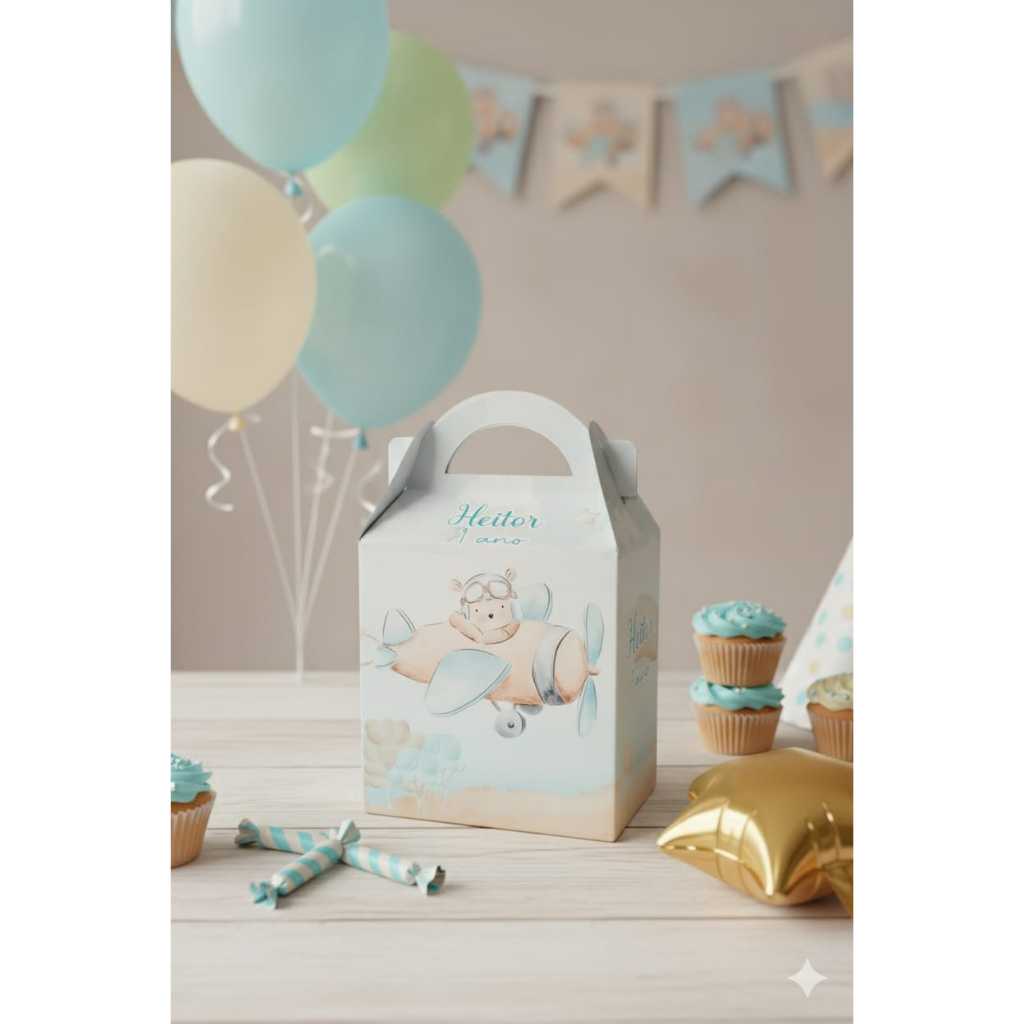 Kit Caixinhas personalizadas Lembrancinhas Ursinho Aviador - PEGUE E MONTE