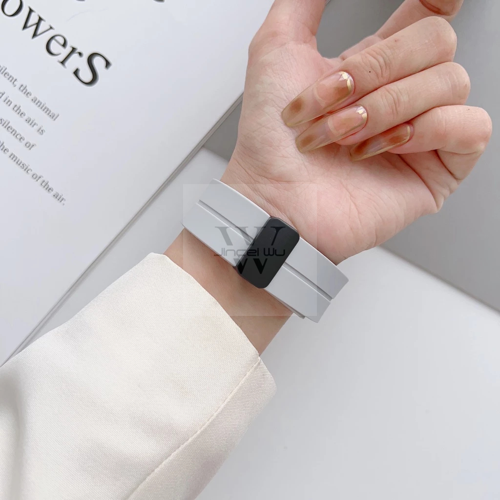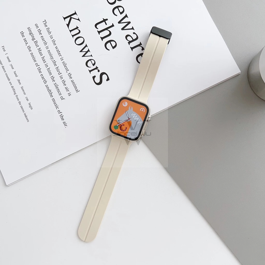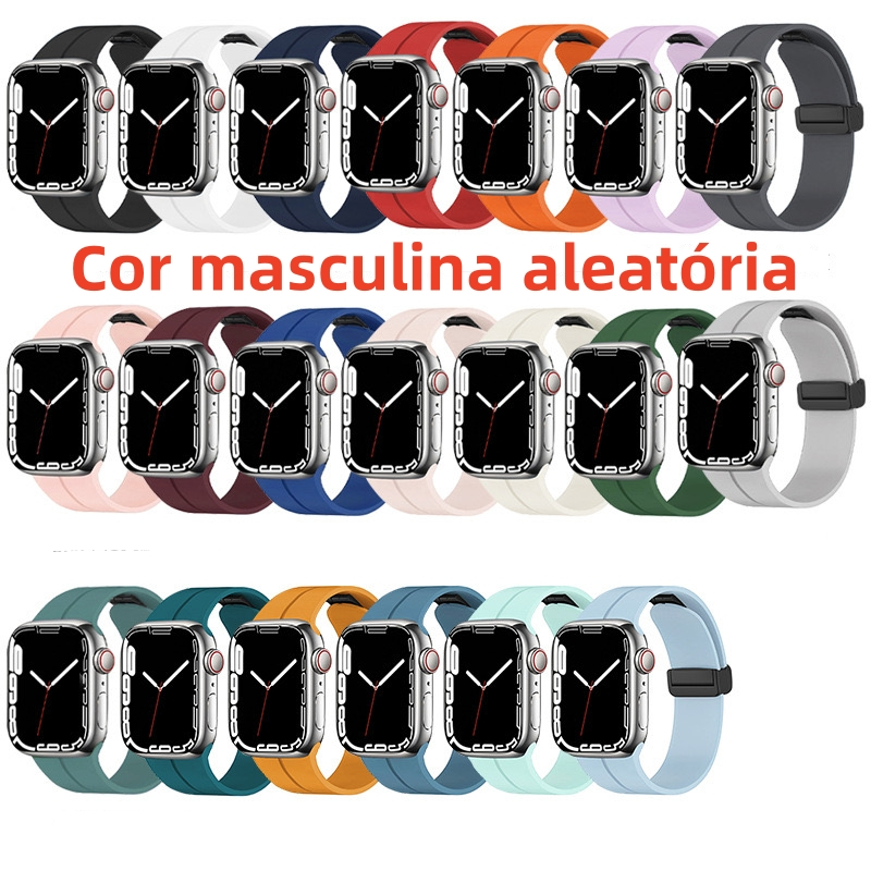 Pulseira silicone magnética compatível apple série ultra 7 8 9 10 se 6 5 e smartwatch 49 46 45 44 42 41 40 38 mm