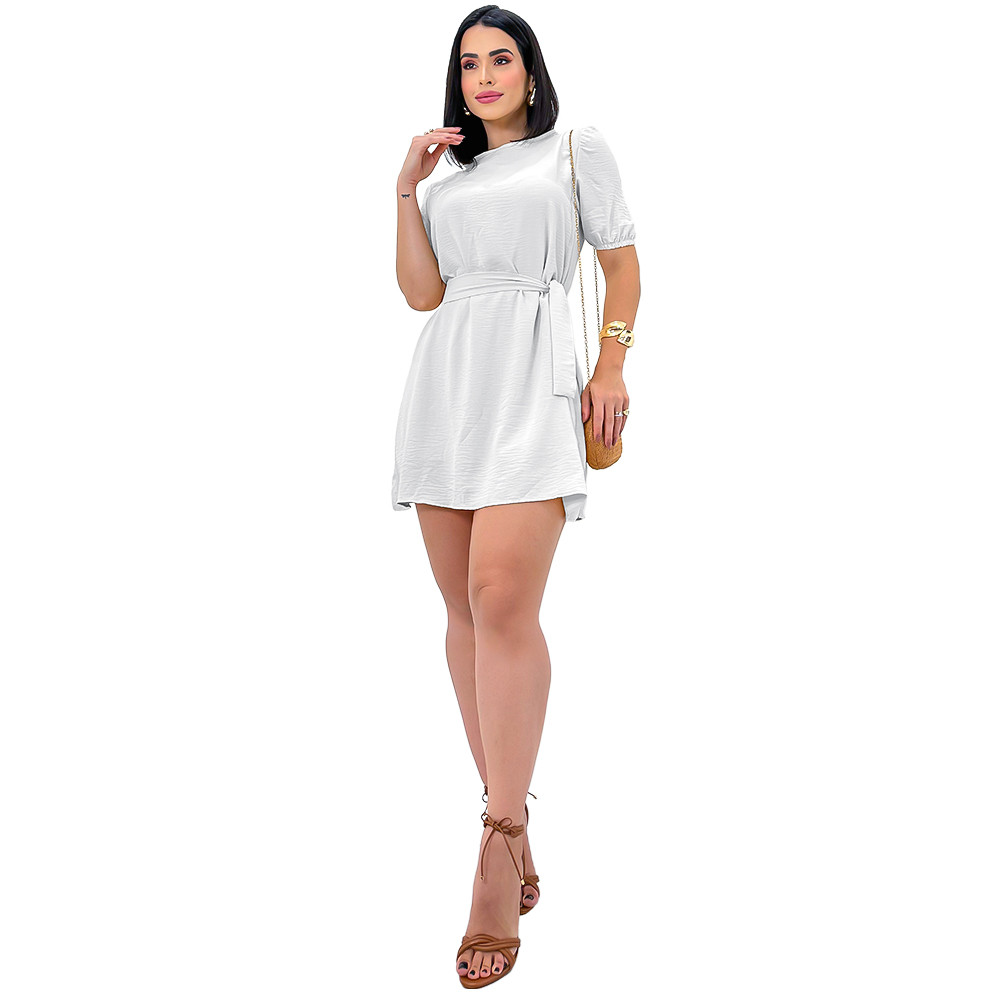 Macaquinho Curto Vestido Duna Manga Curta Bufante Soltinho